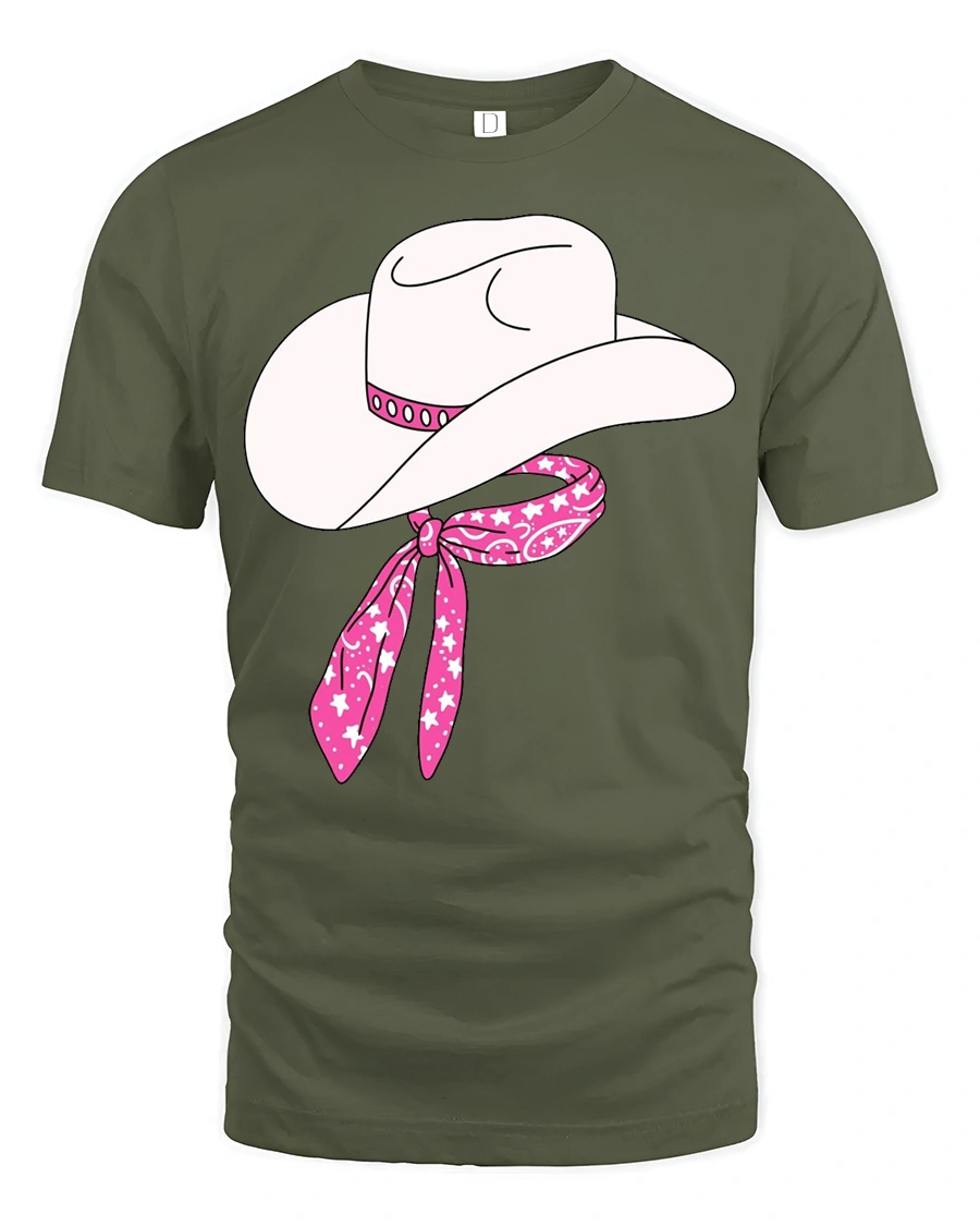Cute Cowgirl Hat With Pink Bandana Western Style T Shirt - military green t-shirt on white background