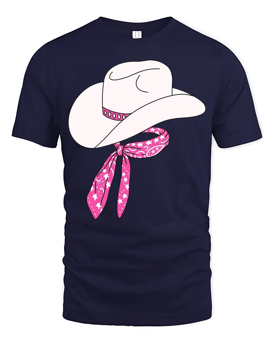 Cute Cowgirl Hat With Pink Bandana Western Style T Shirt - navy t-shirt on white background