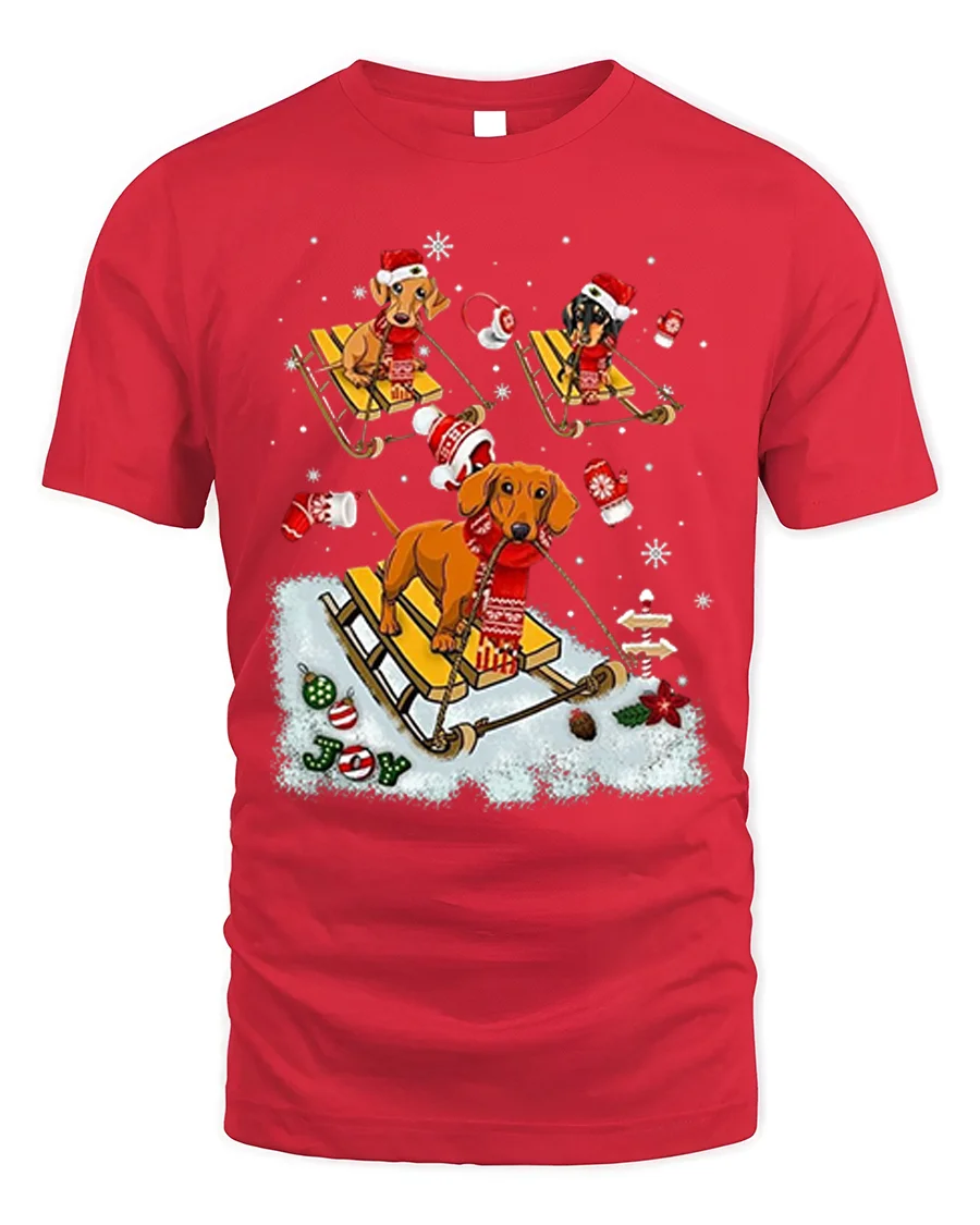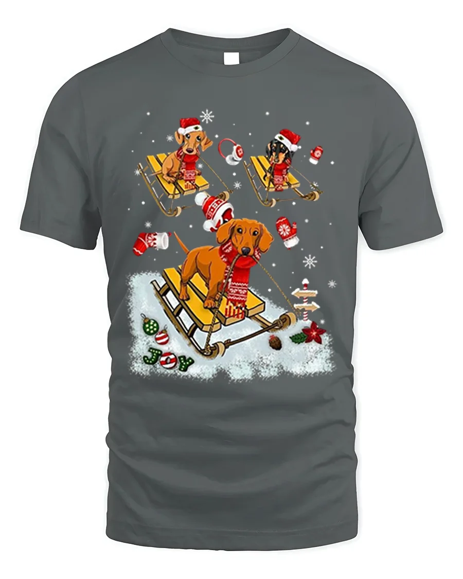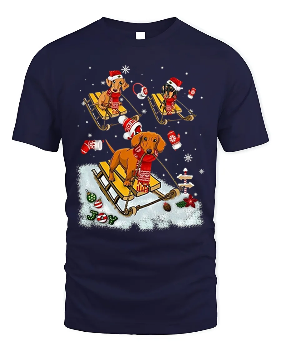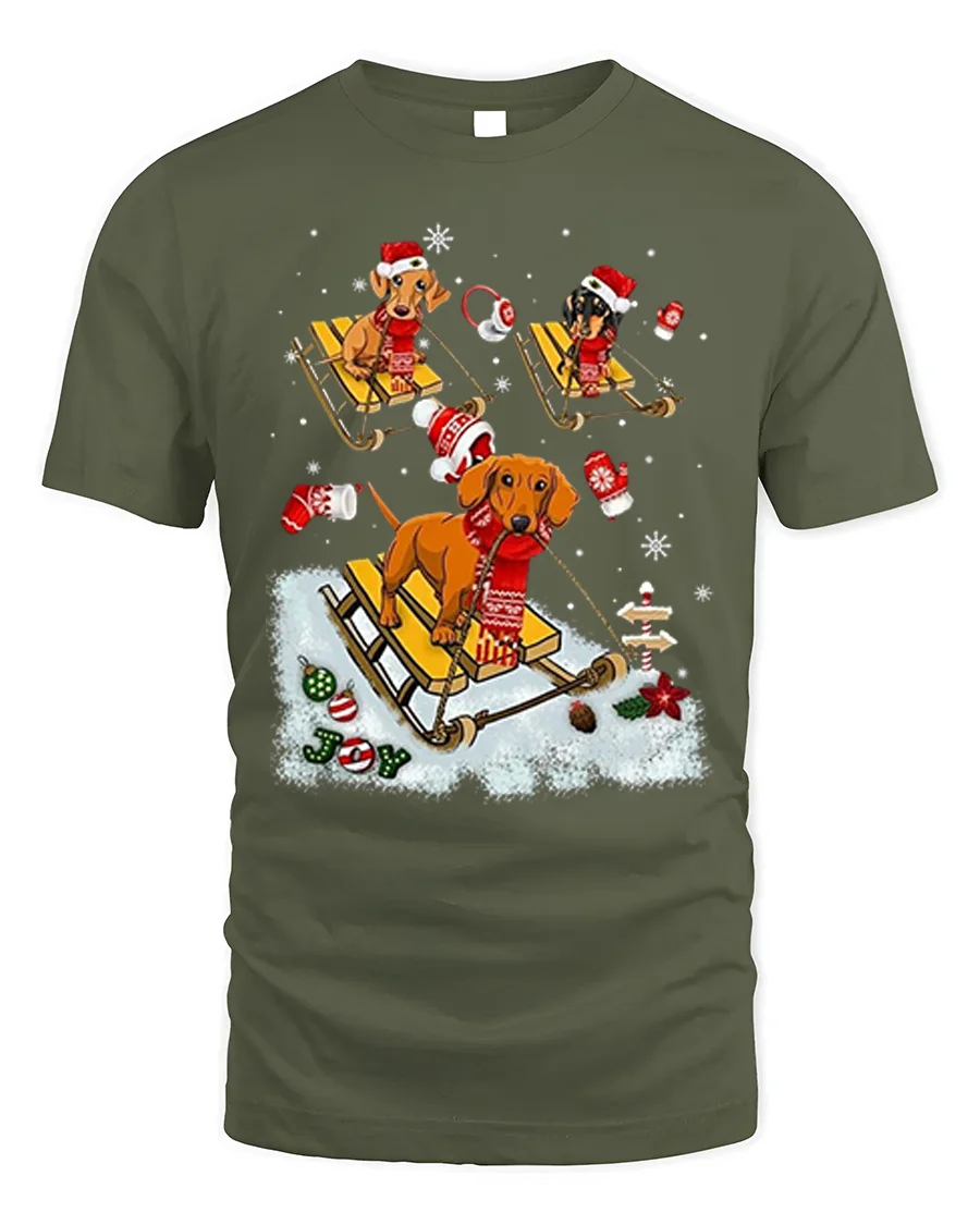This dachshund Christmas t-shirt also makes an ideal holiday gift for dog owners or pet enthusiasts. Celebrate the magic of Christmas with a touch of humor and a lot of cuteness. Let these joyful dachshunds sled right into your heart and make your holiday outfit extra special.
