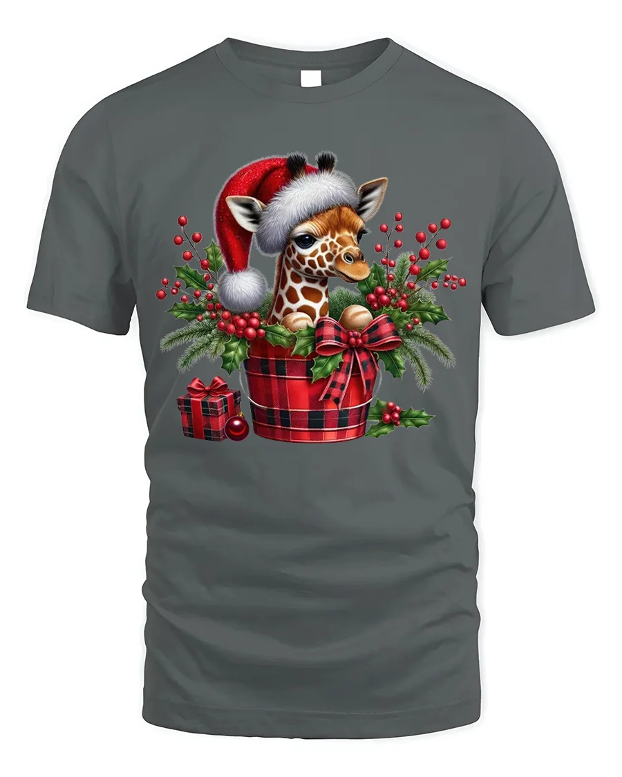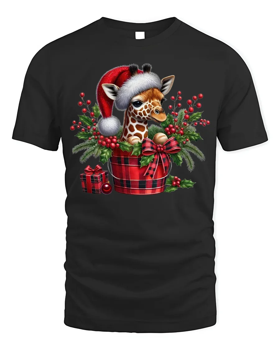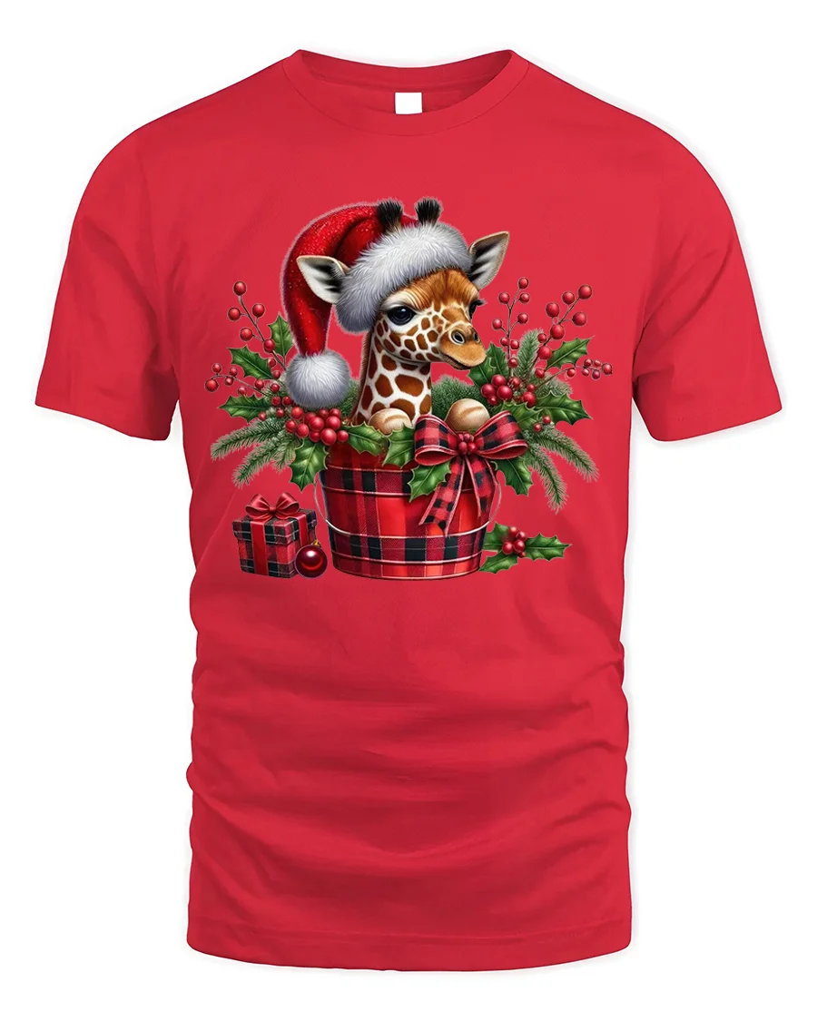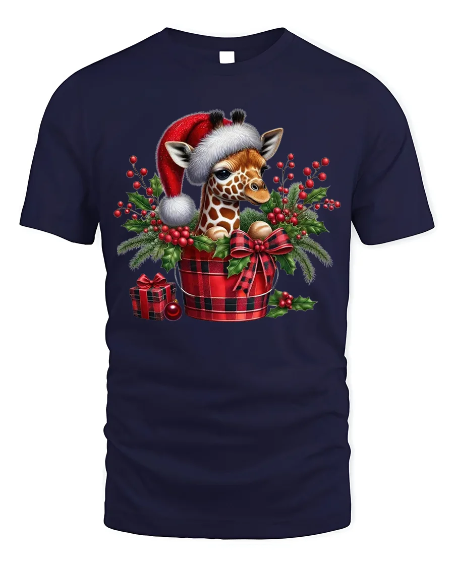 Spread holiday cheer and show off your love for animals with this adorable giraffe Christmas tee.