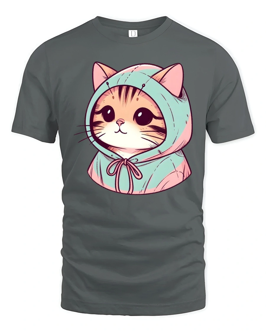 Cute Hoodie Cat Cartoon Graphic T Shirt Kawaii Style Animal Tee combines soft charm and playful personality into an irresistibly adorable illustration. The sweet kitten character wearing a cozy hoodie creates a heartwarming visual that expresses comfort and creativity in a simple yet eye catching design. The gentle color tones and clean illustration style make this tshirt a stylish addition to casual fashion collections.