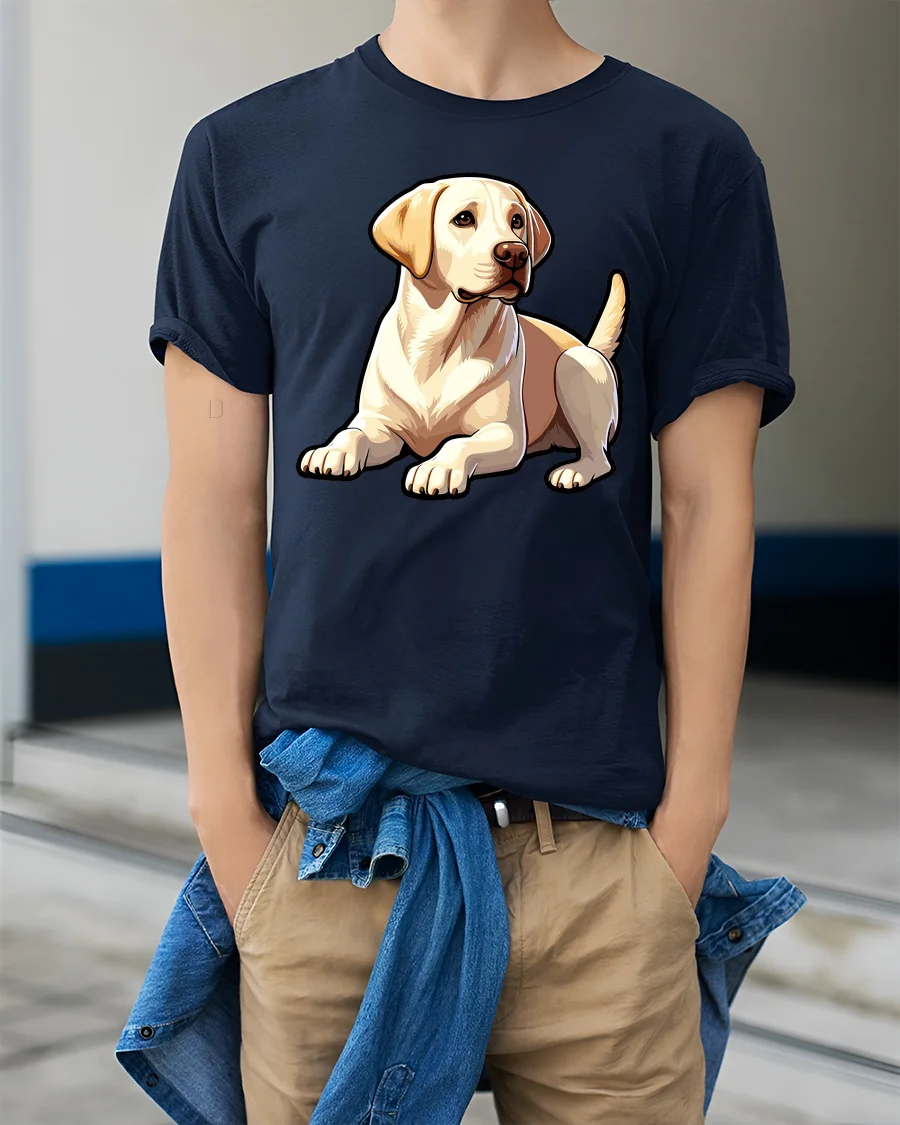 Inspired by the joyful bond between humans and pets, this graphic tee delivers a meaningful and fashionable look that remains relevant across seasons. The labrador retriever symbolizes loyalty, friendliness, and happiness, making this design a heartwarming addition to any collection of animal themed fashion.