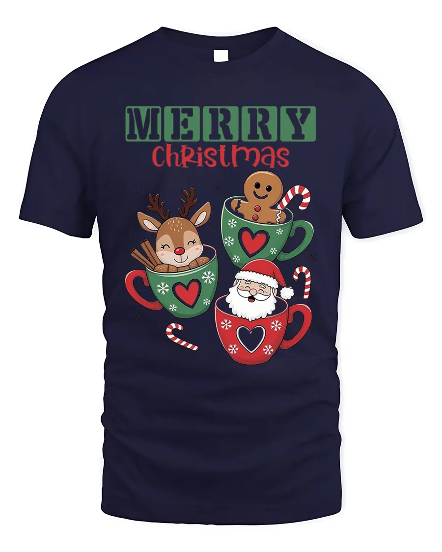 Cute Merry Christmas T-Shirt Santa Reindeer Gingerbread Tee