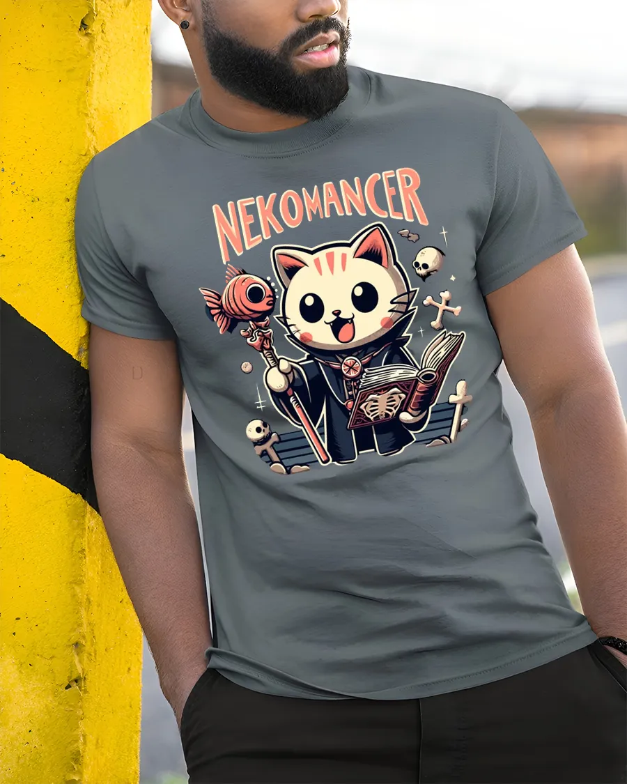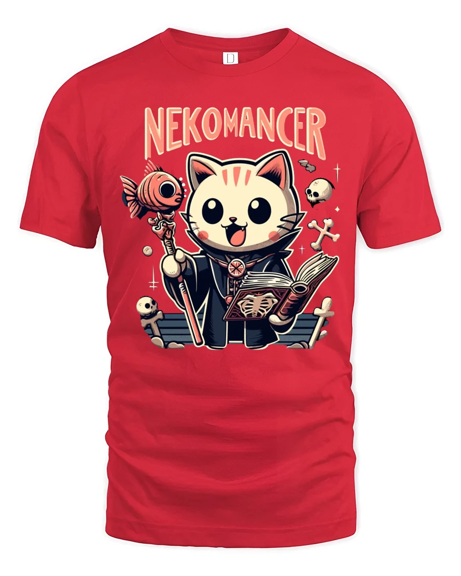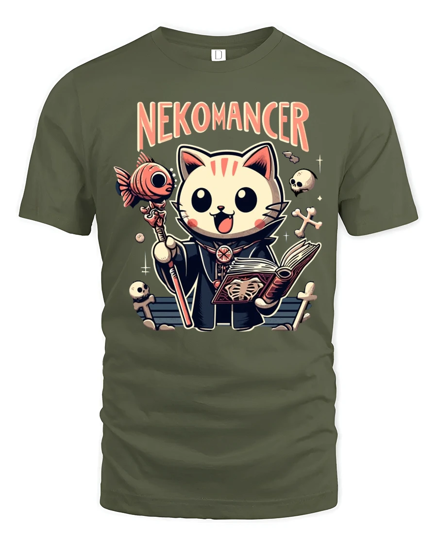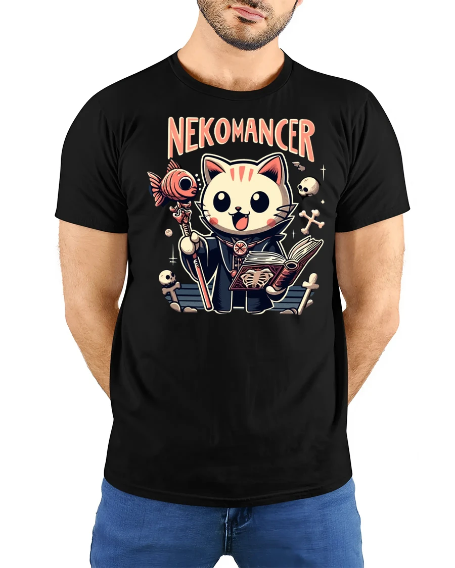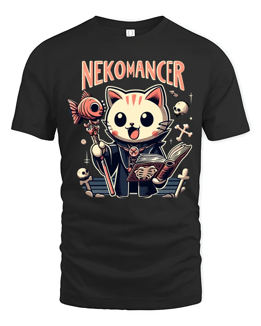Cute Nekomancer Cat Necromancer Funny Magic Graphic Tee Tshirt blends adorable charm with a playful dark fantasy theme.