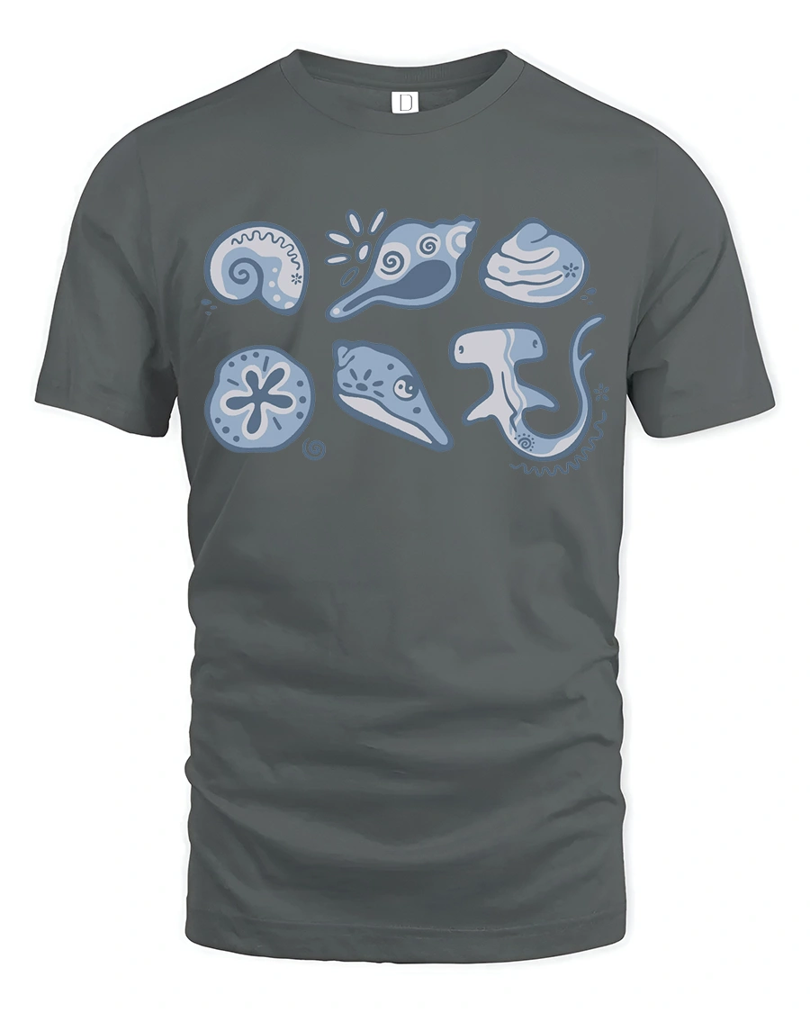 Cute Ocean Creatures Graphic Tee Minimal Marine Life Tshirt - gray t-shirt on white background