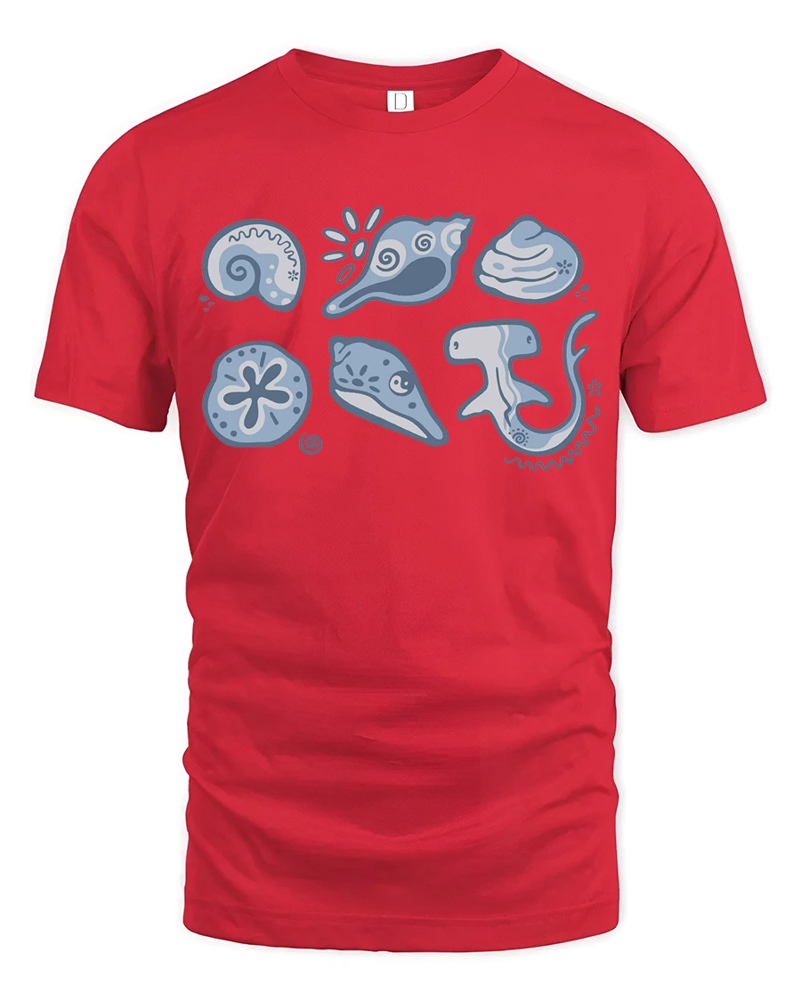 Cute Ocean Creatures Graphic Tee Minimal Marine Life Tshirt - red t-shirt on white background