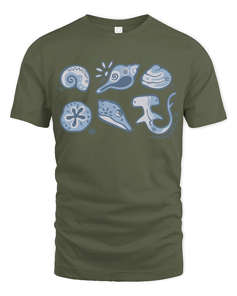 Cute Ocean Creatures Graphic Tee Minimal Marine Life Tshirt - military green t-shirt on white background
