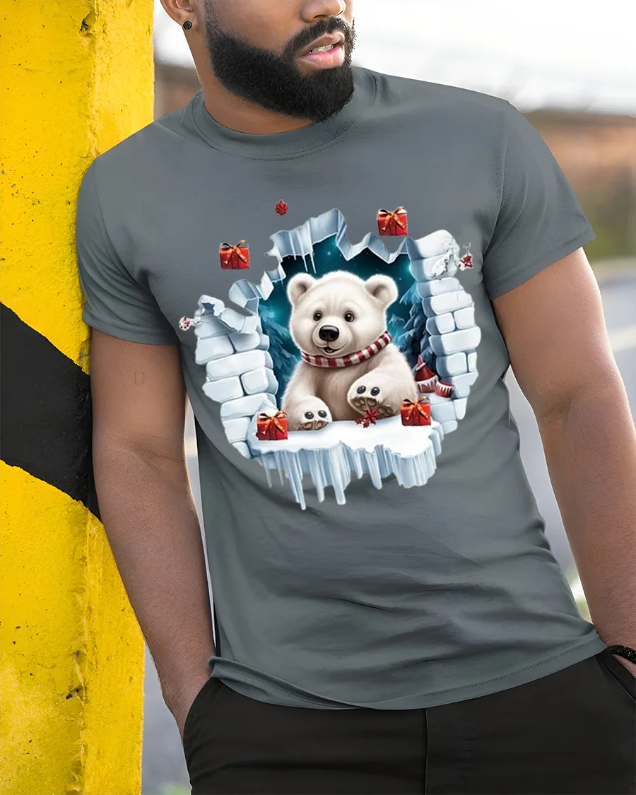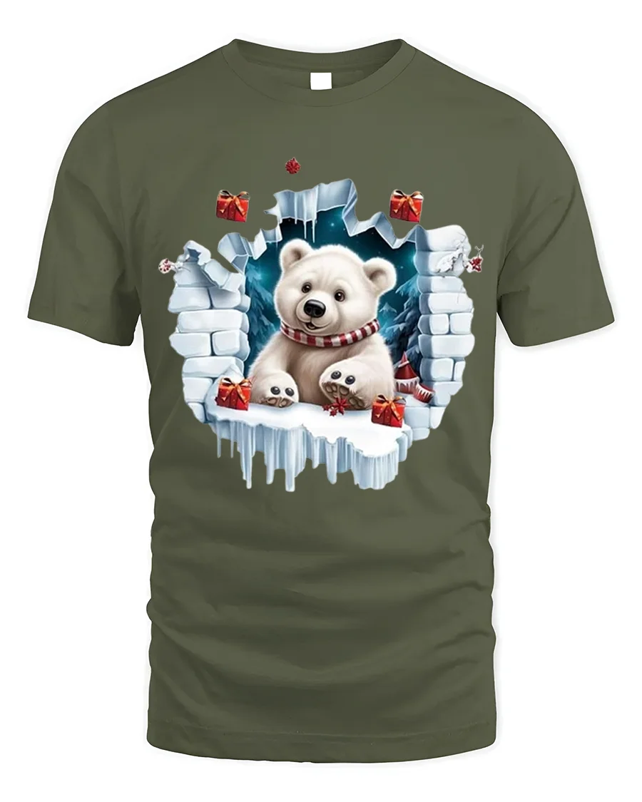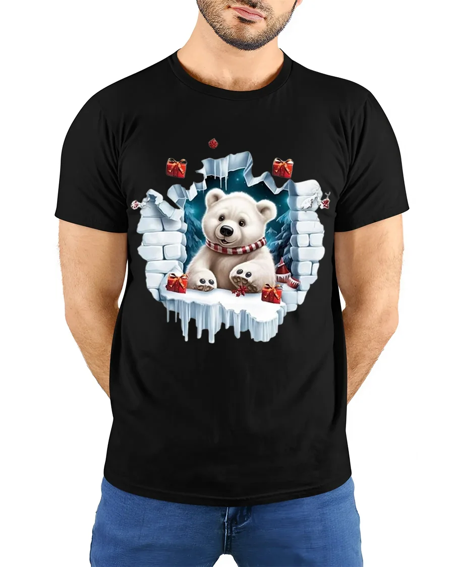Made from soft, breathable cotton, this t-shirt provides lasting comfort and style for all your holiday adventures. The high-quality print showcases every detail — from the bear’s fluffy fur to the shimmering snow — making it a standout piece for Christmas parties, family gatherings, or lounging by the fire. Its relaxed fit ensures you stay cozy and festive all day long.