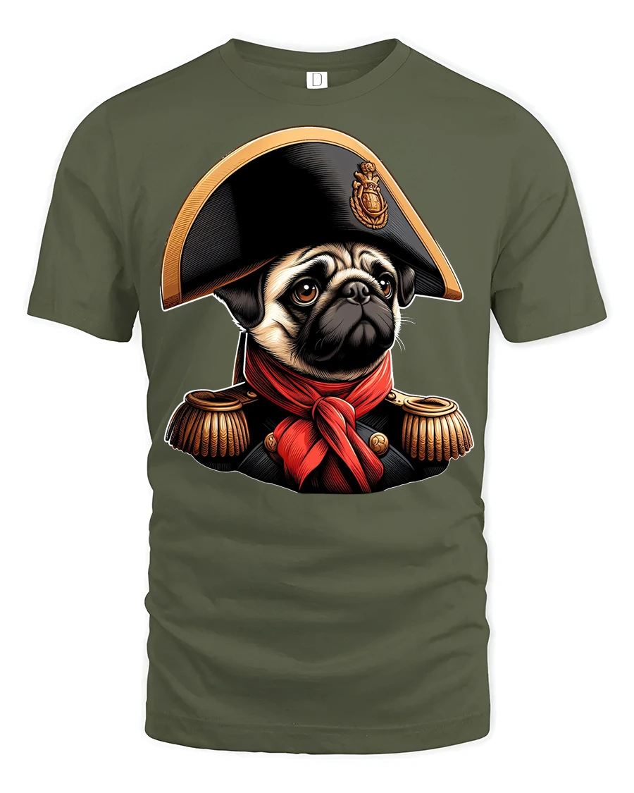 Cute Pug Emperor Portrait Graphic T Shirt Funny Historic Vibe - military green t-shirt on white background