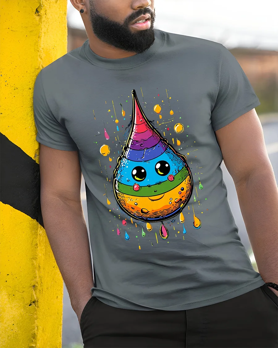 Bring a splash of color and happiness into your day with the Cute Rainbow Drop Colorful Art Graphic T-Shirt. This eye-catching tee features an adorable rainbow drop character surrounded by dripping colors, creating a playful and artistic look that instantly lifts your mood.