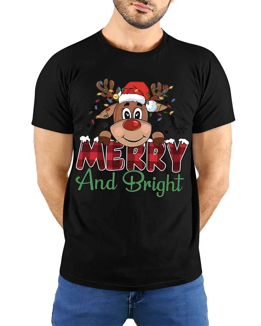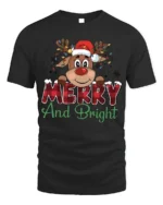 Home Halloween & Noel Cute Reindeer Merry And Bright Christmas Holiday T-Shirt