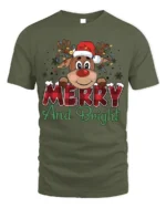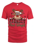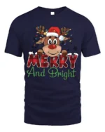 Cute Reindeer Merry And Bright Christmas Holiday T-Shirt