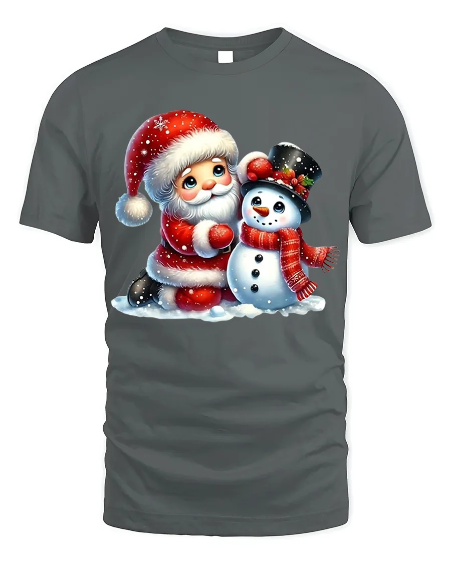 Cute Santa and Snowman Christmas T-Shirt Holiday Winter Tee