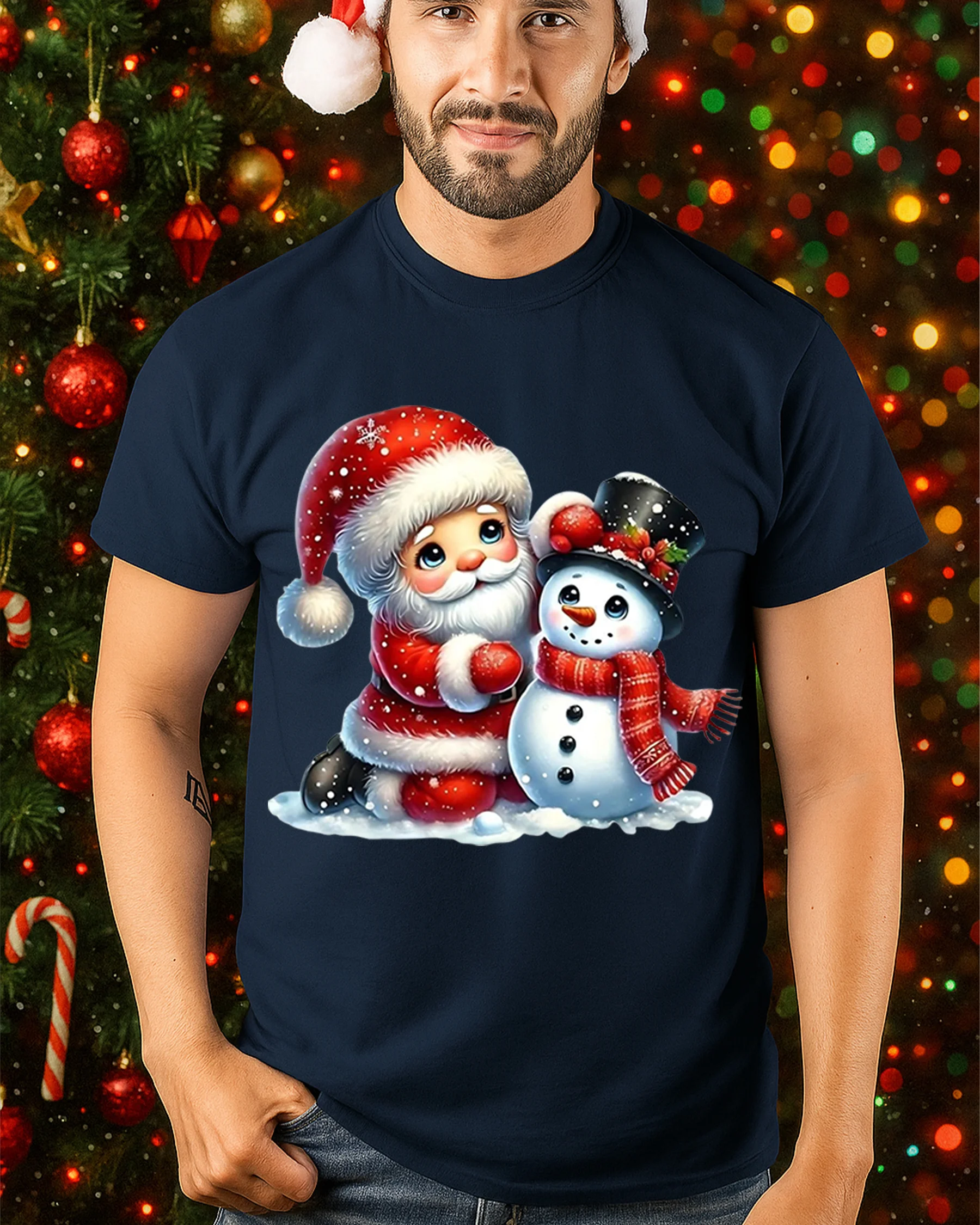 Crafted from premium soft cotton, this t-shirt offers comfort, durability, and vibrant color that lasts. The adorable Santa and snowman artwork is printed in rich detail, making it perfect for Christmas parties, family photos, or cozy evenings by the fire. Whether you’re decorating the tree or exchanging gifts, this tee keeps you in the holiday mood all season long.