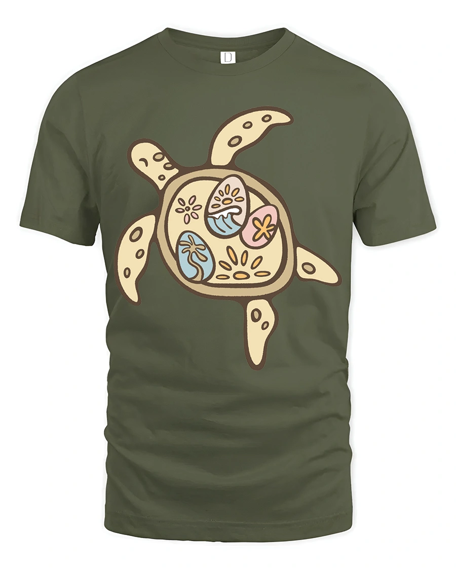 Celebrate ocean beauty with this Cute Sea Turtle Tropical Pattern Graphic Tee Ocean Lover design that captures the calm and peaceful spirit of marine life. The soft artistic illustration combines beach inspired shapes and gentle tropical details inside the turtle shell, creating a unique visual that feels warm, relaxing, and naturally stylish. The balanced design delivers a charming coastal aesthetic that stands out without being overwhelming.