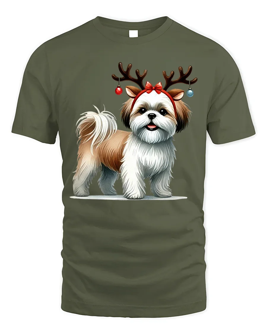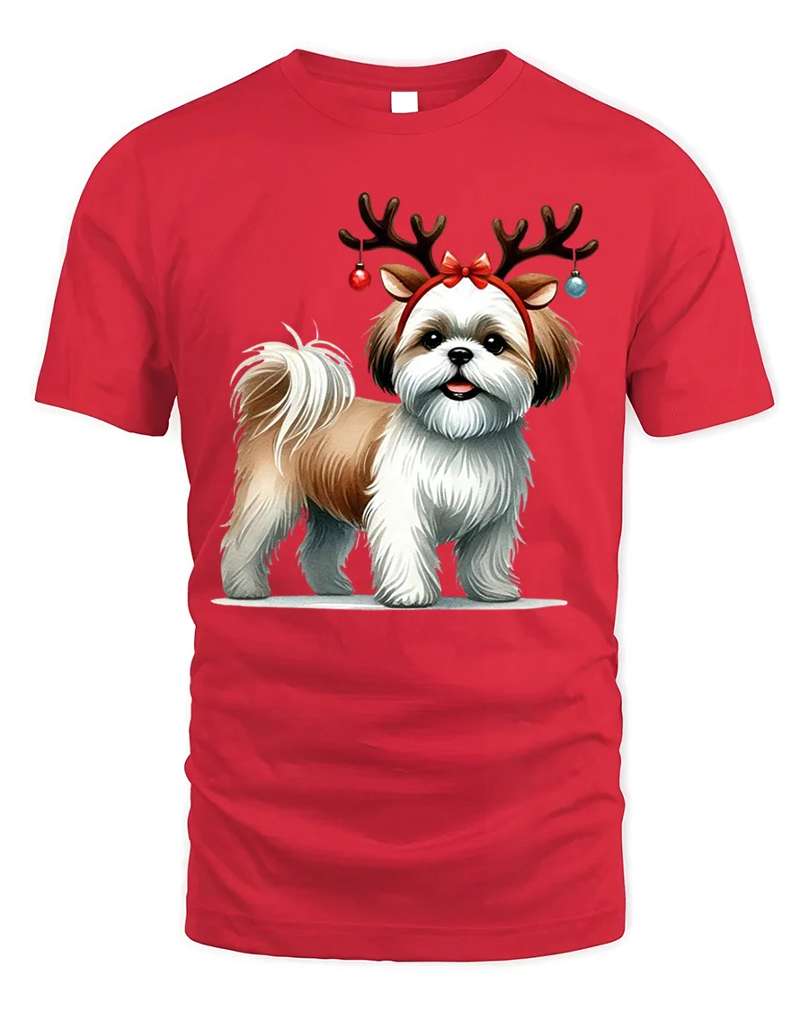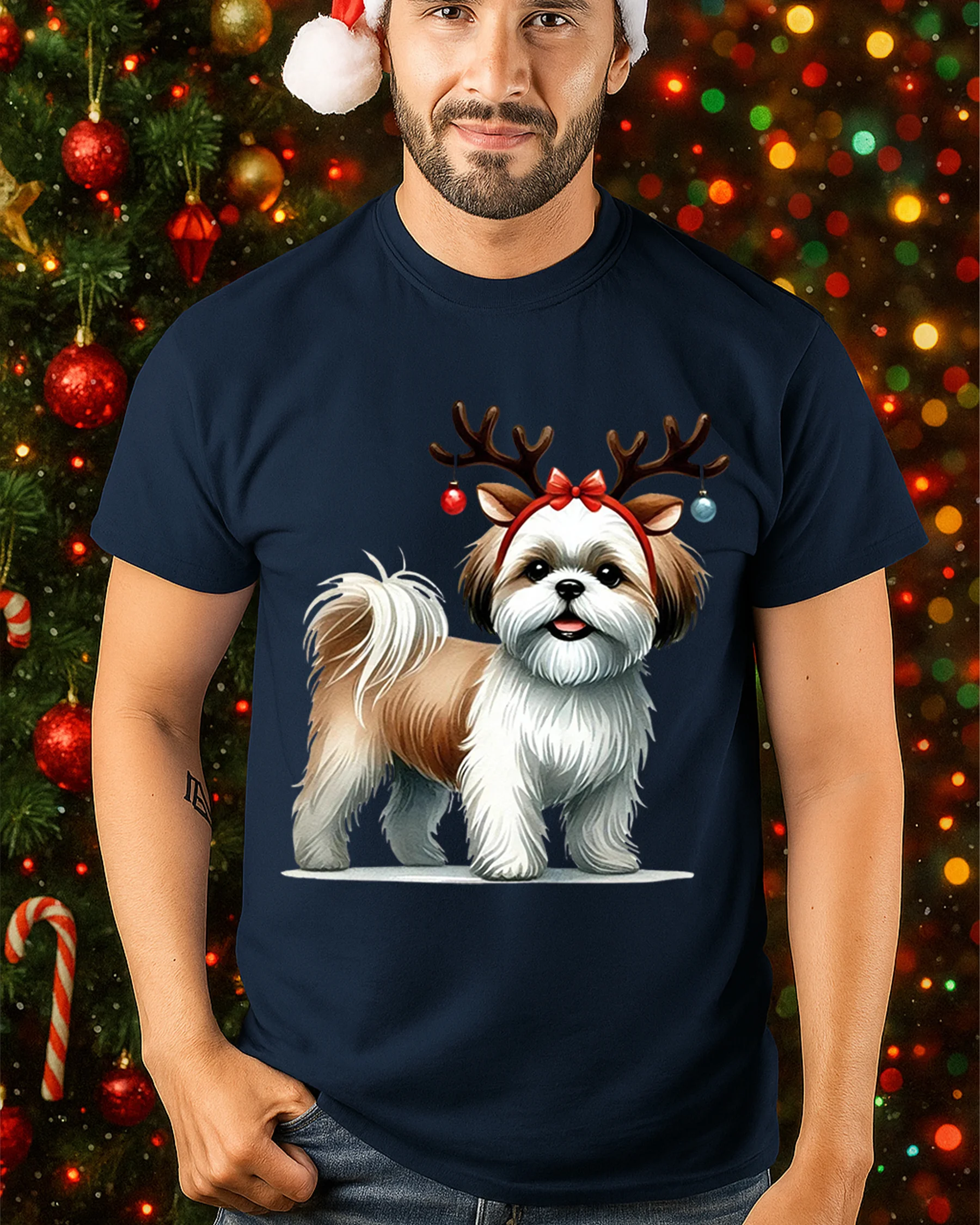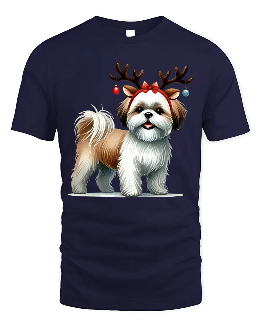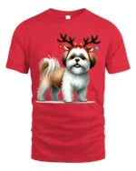 Cute Shih Tzu Christmas T-Shirt Funny Holiday Reindeer Tee