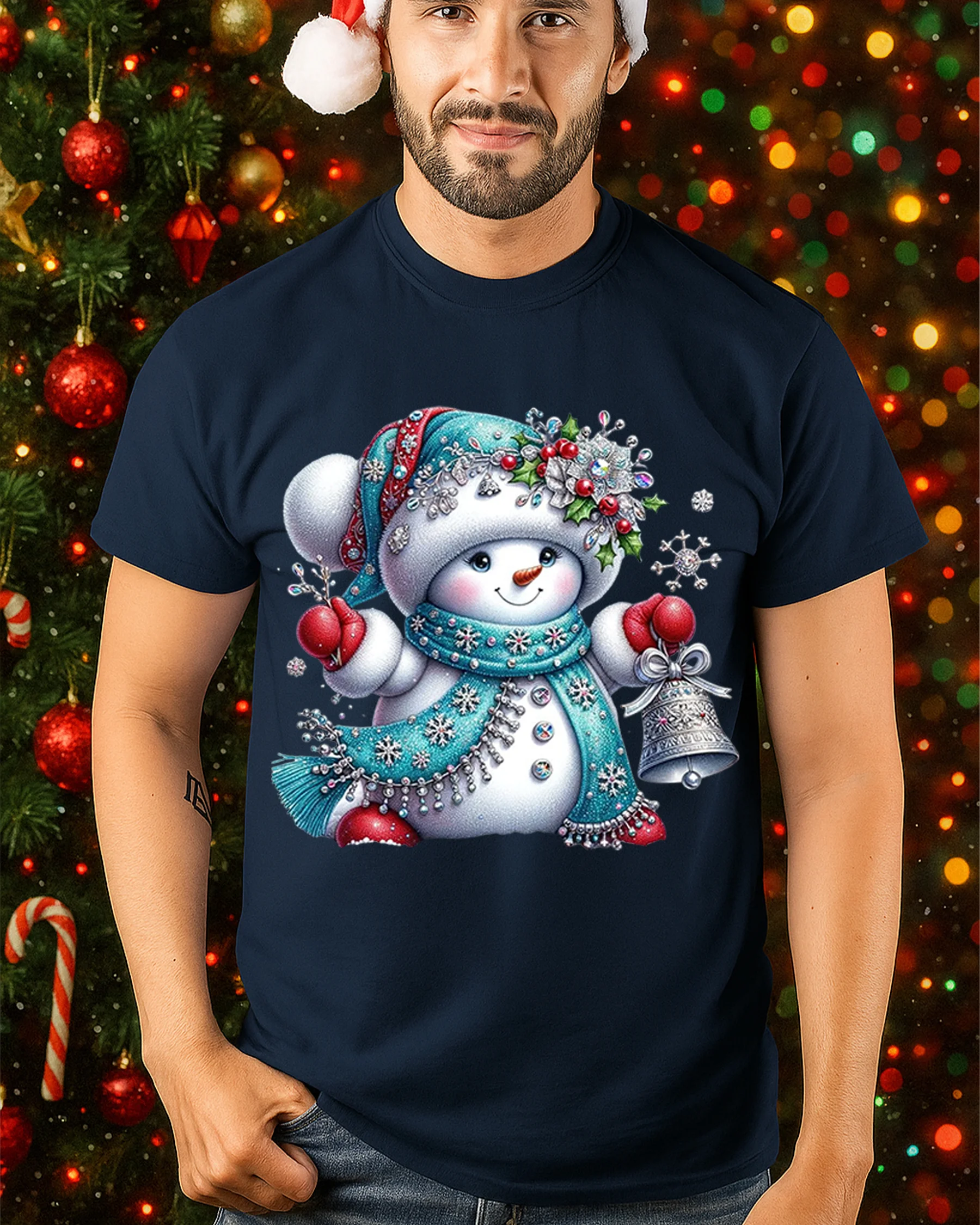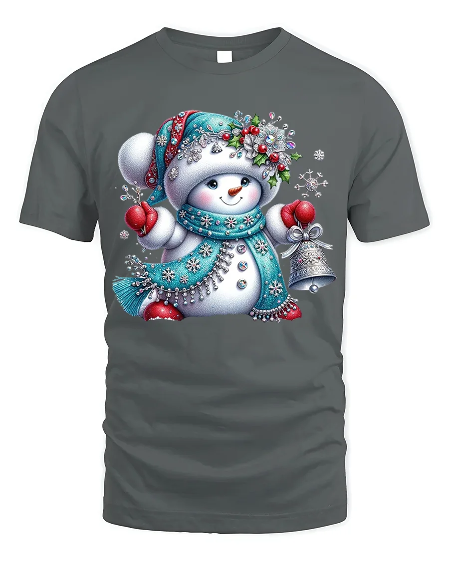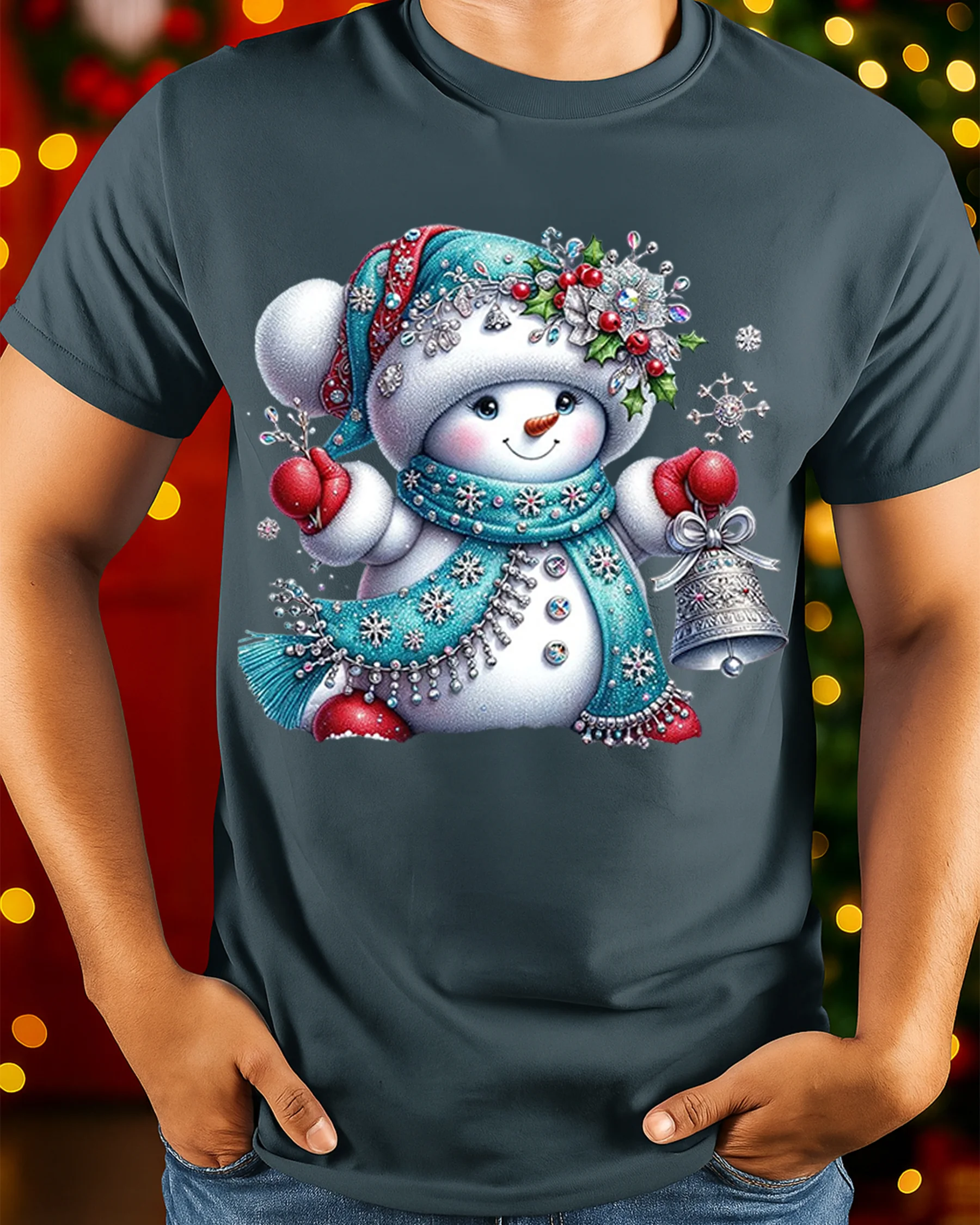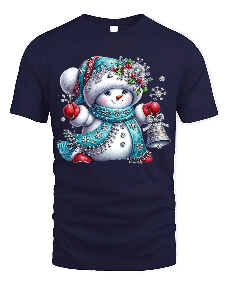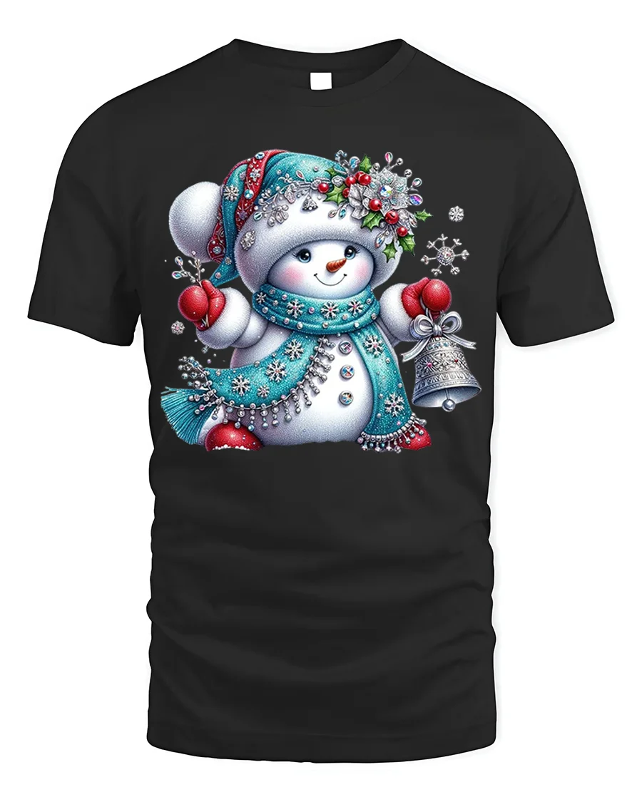Bring a touch of sparkle to your winter wardrobe with this Cute Snowman Christmas T-Shirt Winter Bell Holiday Tee. Featuring an adorable snowman dressed in a cozy teal hat and scarf, holding a shiny Christmas bell surrounded by snowflakes and holly, this festive design perfectly captures the joy of the holiday season. It’s the perfect tee for anyone who loves cheerful, heartwarming Christmas designs.
