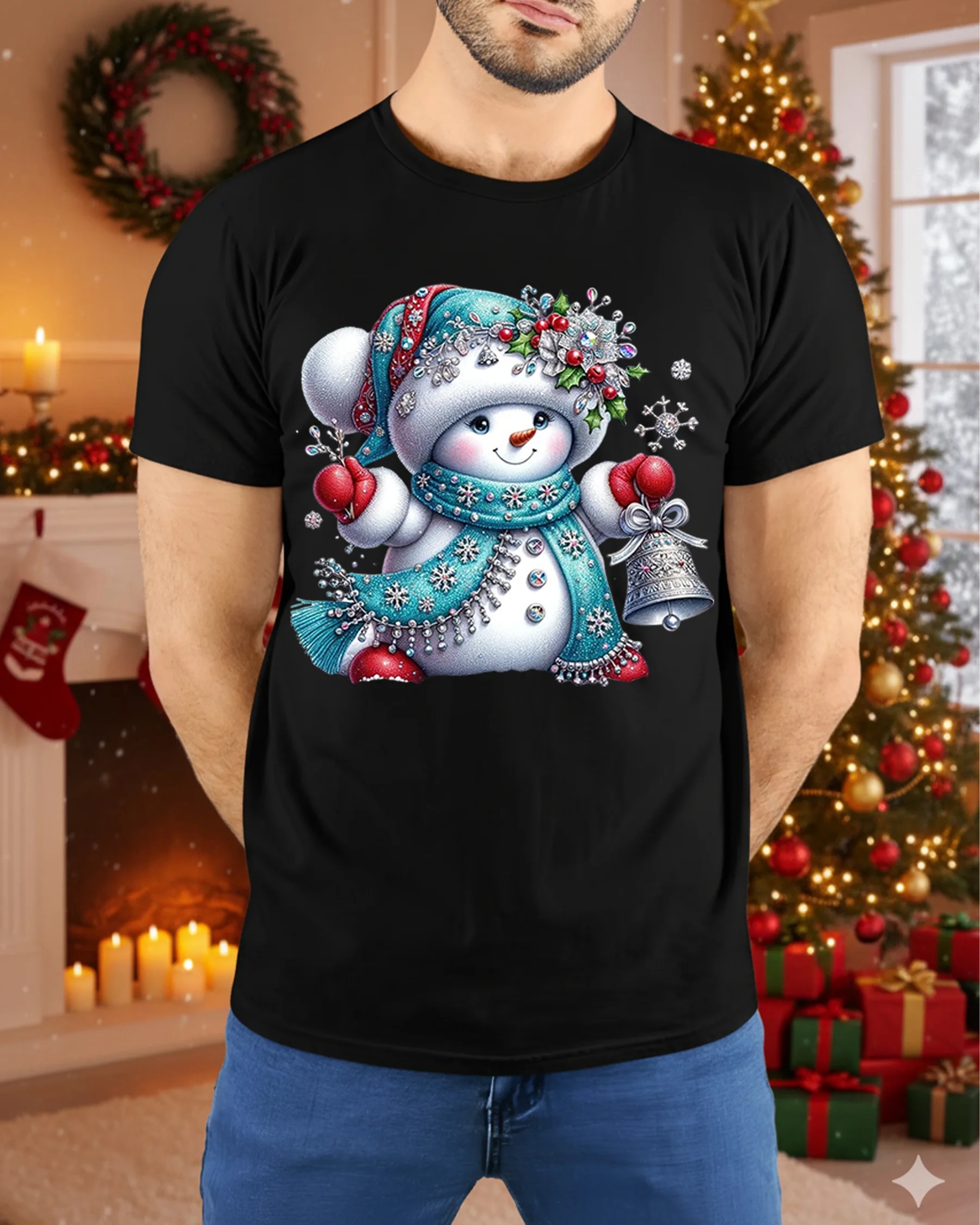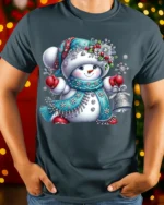 Made from soft, breathable cotton, this t-shirt ensures all-day comfort whether you’re celebrating at a holiday party or enjoying a cozy night by the fire. The high-quality print highlights every intricate detail—from the shimmering snowflakes to the snowman’s sweet smile—making it a standout piece for winter festivities.