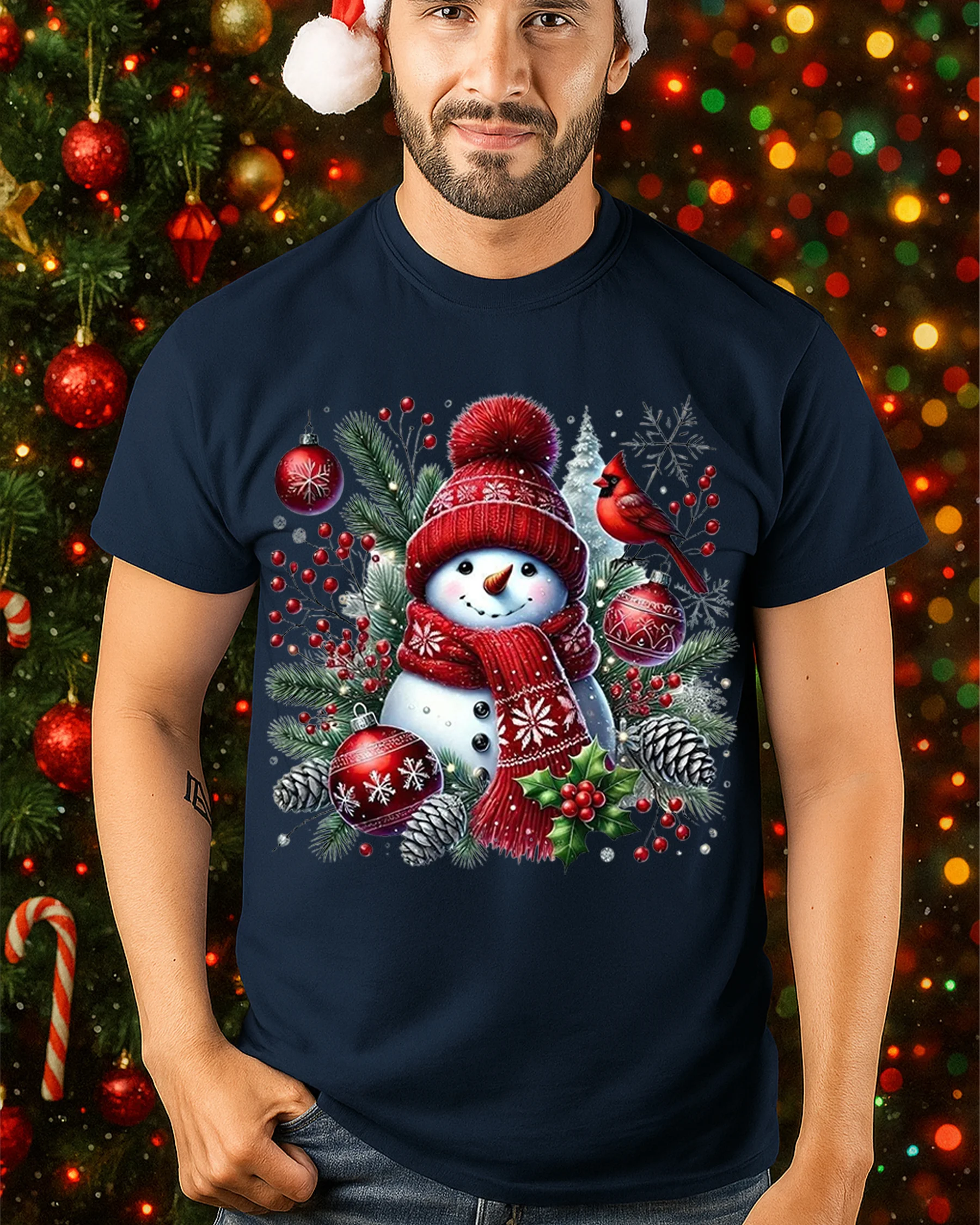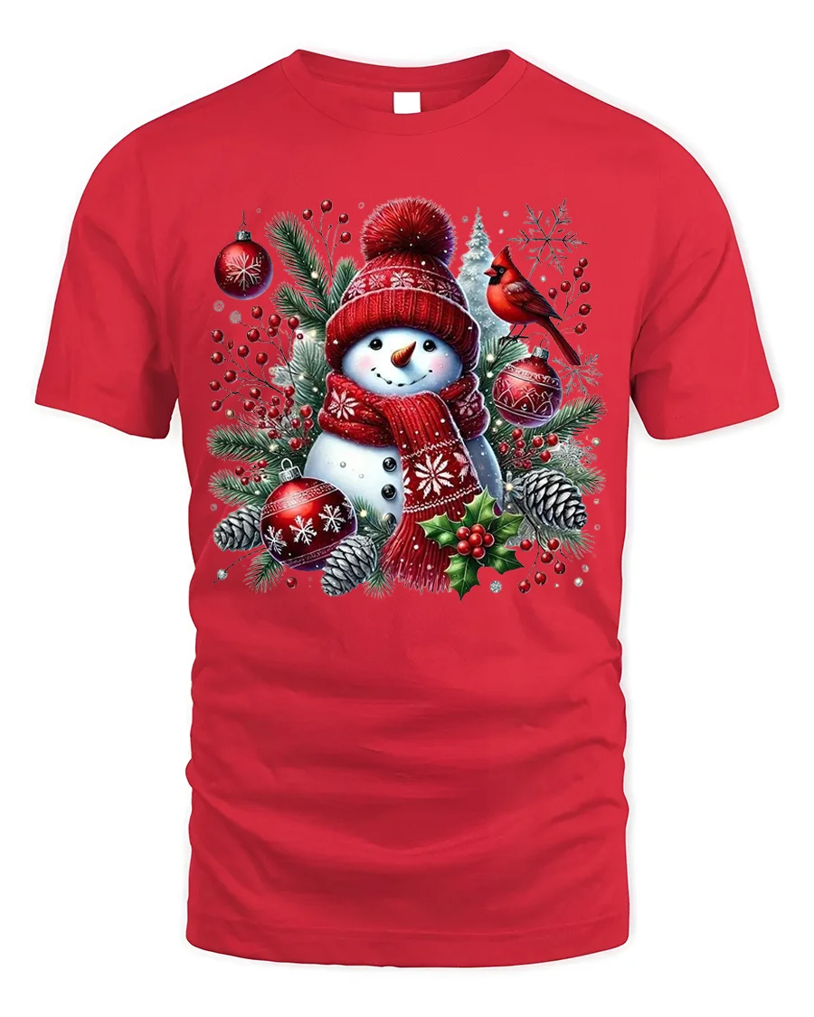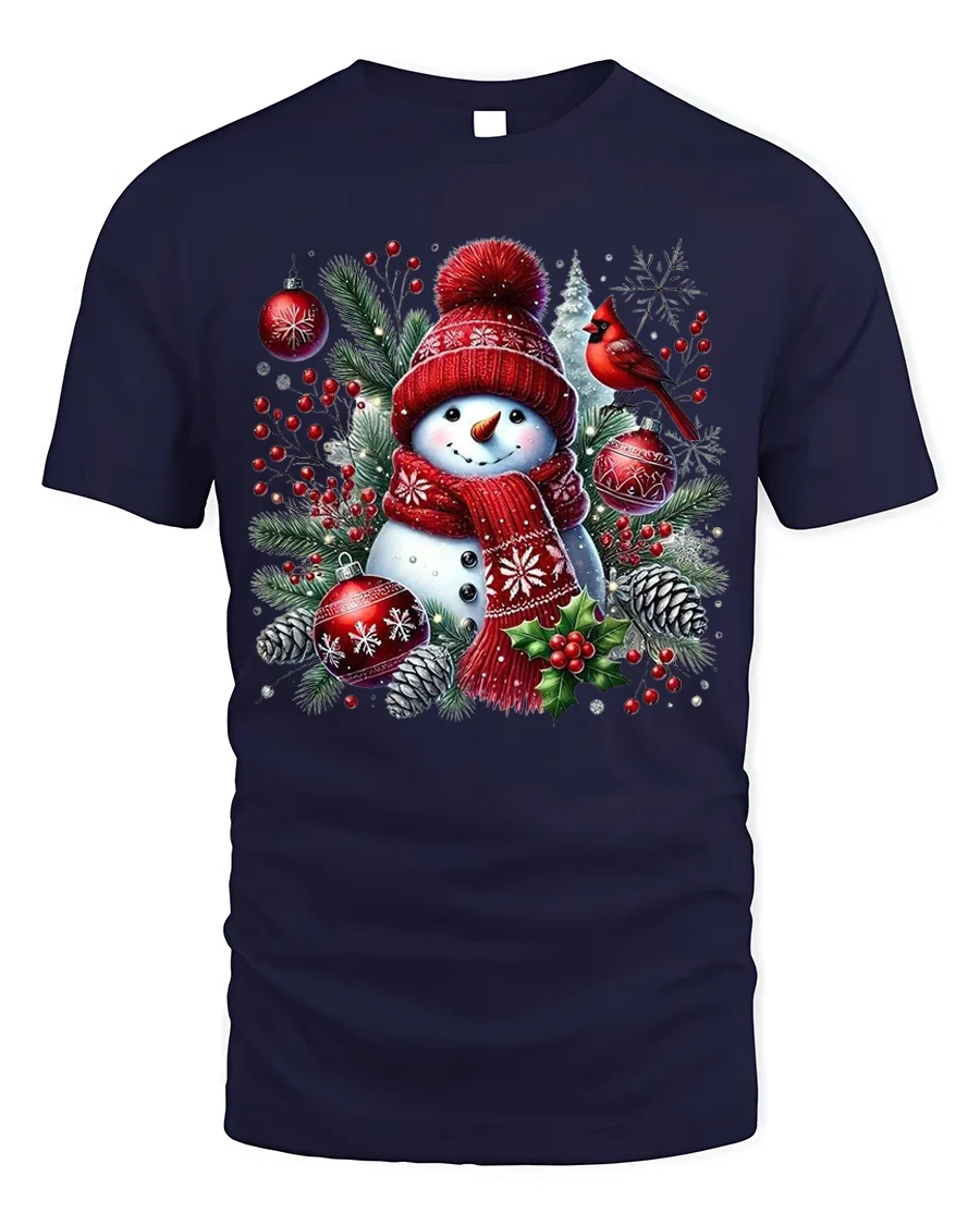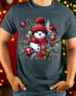 Bring the magic of winter to life with this Cute Snowman Christmas T-Shirt Winter Holiday Cardinal Tee. Featuring a smiling snowman in a cozy red hat and scarf surrounded by pine branches, ornaments, and a bright red cardinal, this design perfectly captures the warmth and joy of the holiday season. It’s the ideal shirt for anyone who loves festive, heartwarming Christmas style.