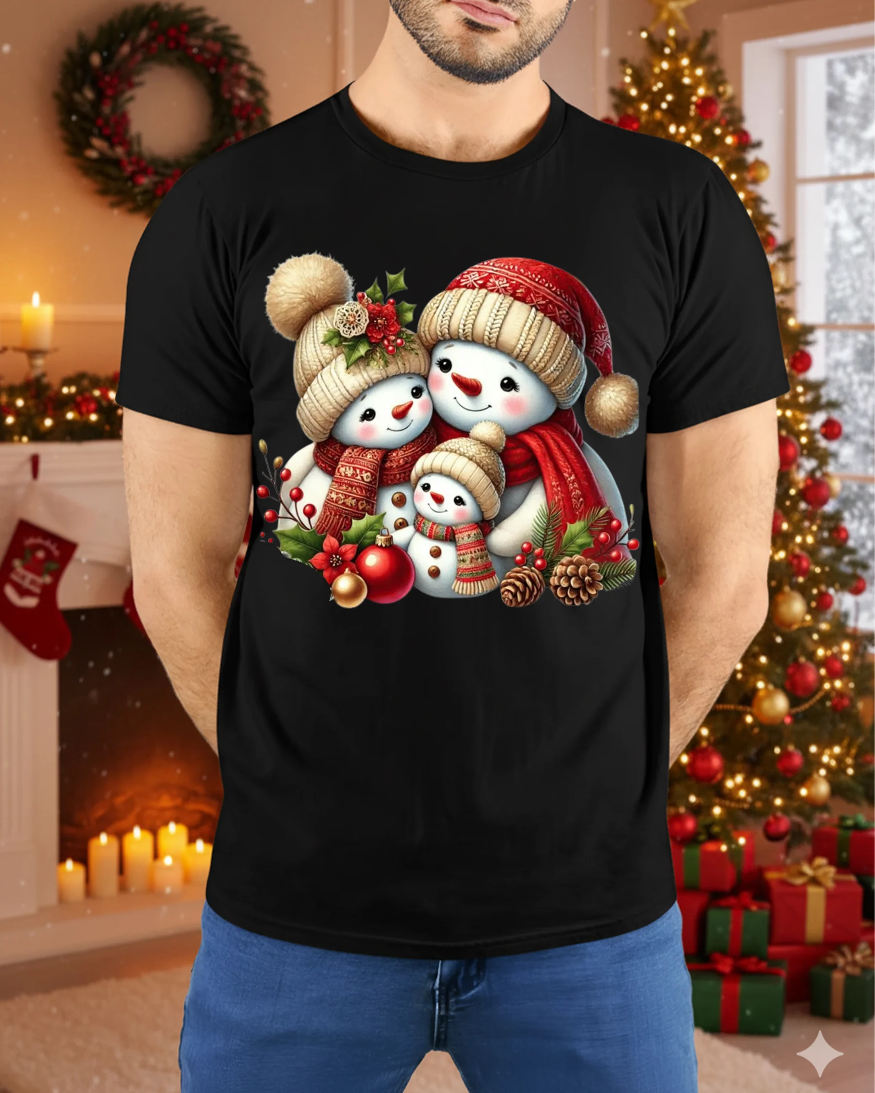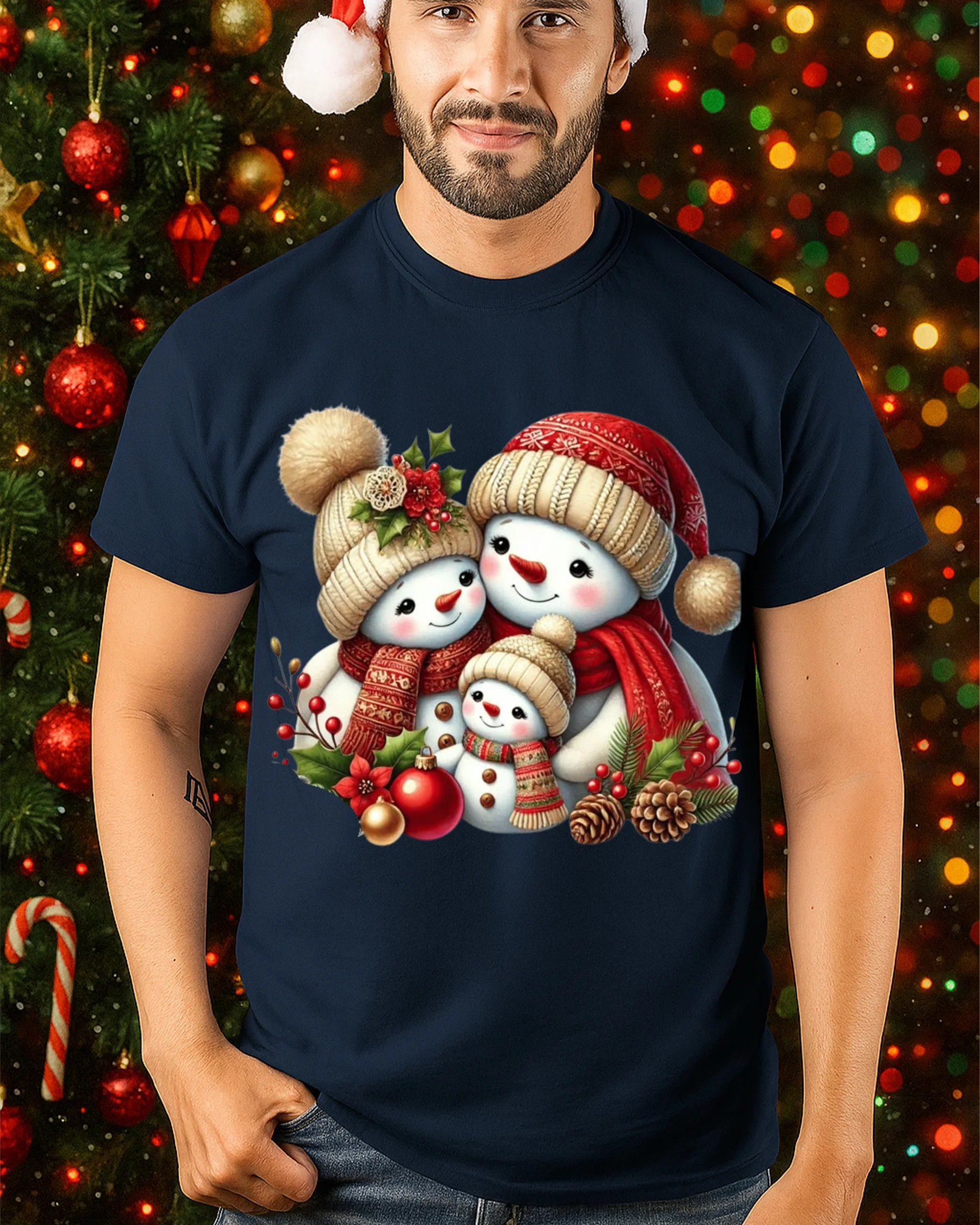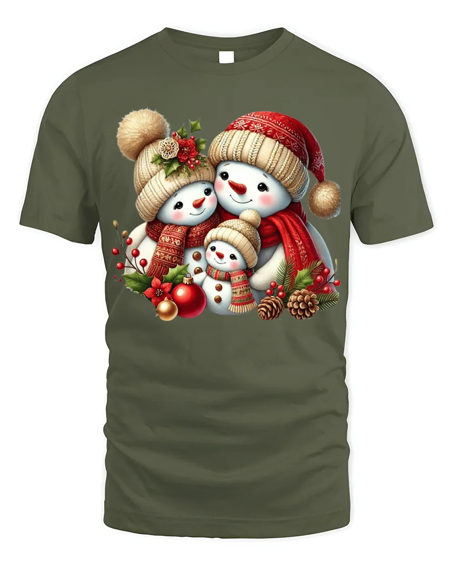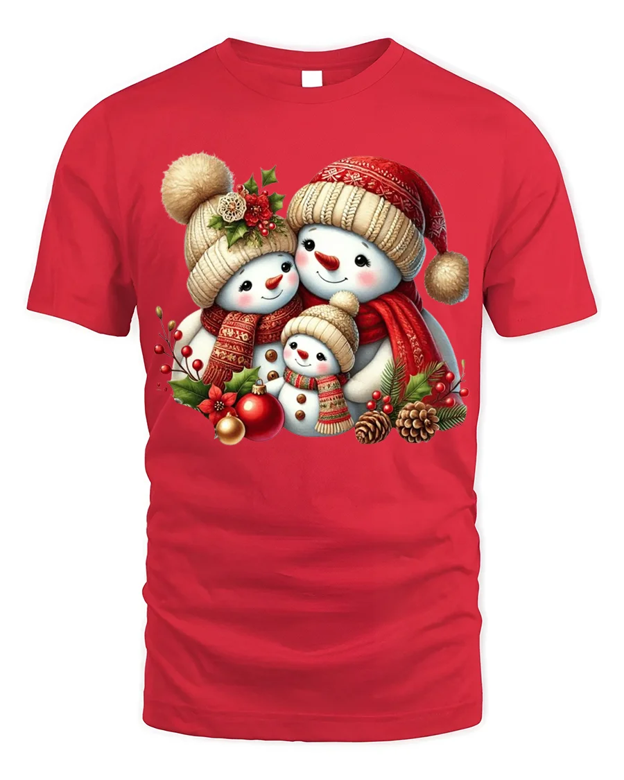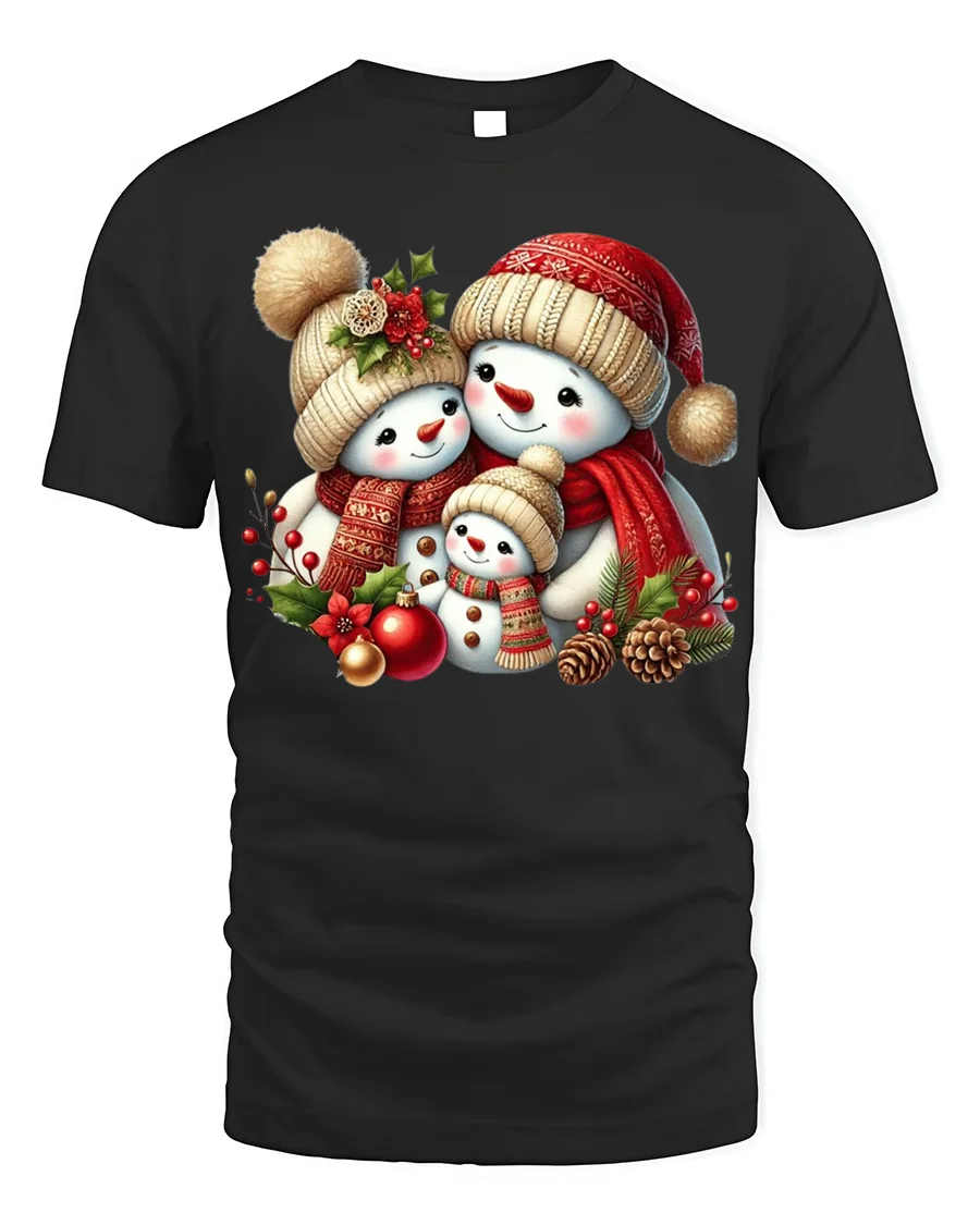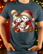Made from soft, breathable cotton, this t-shirt ensures all-day comfort and a perfect fit. The high-quality print showcases the adorable snowman family in vivid detail, making it a standout piece for anyone who loves Christmas magic. Whether you’re decorating the tree, sipping cocoa, or exchanging gifts, this tee will make you feel the warmth of the season.