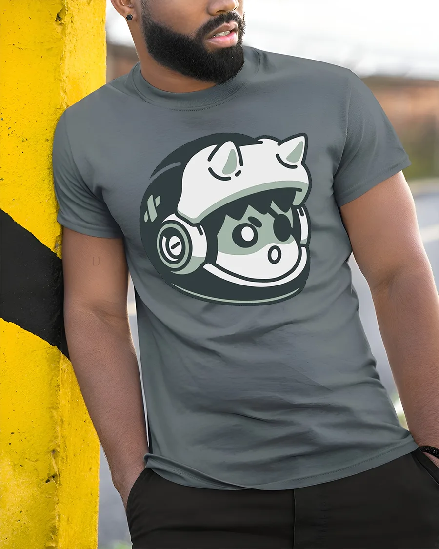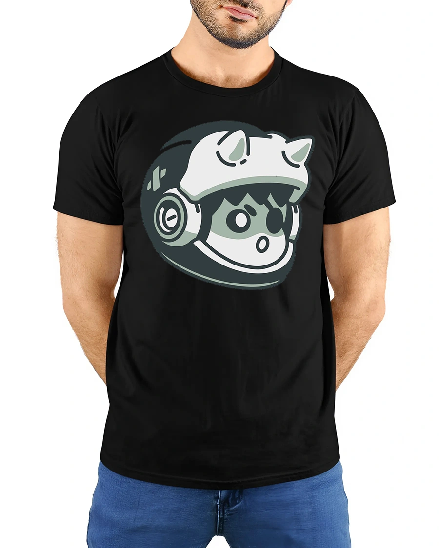 Featuring a charming cartoon cat inside a sleek astronaut helmet, this design blends playful imagination with modern style.