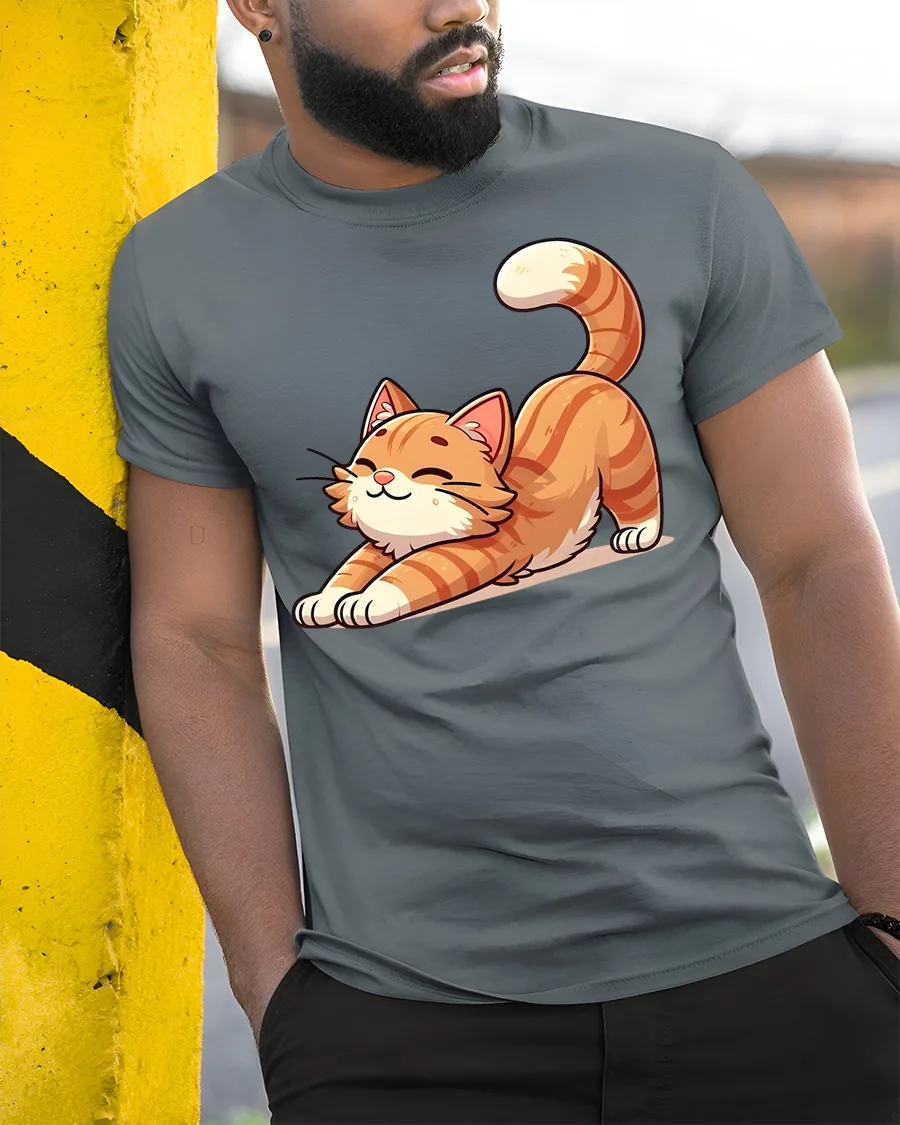 Cute Stretching Cat Graphic T Shirt Funny Relaxed Kitty Style Tee brings a warm and cheerful vibe to your everyday wardrobe.