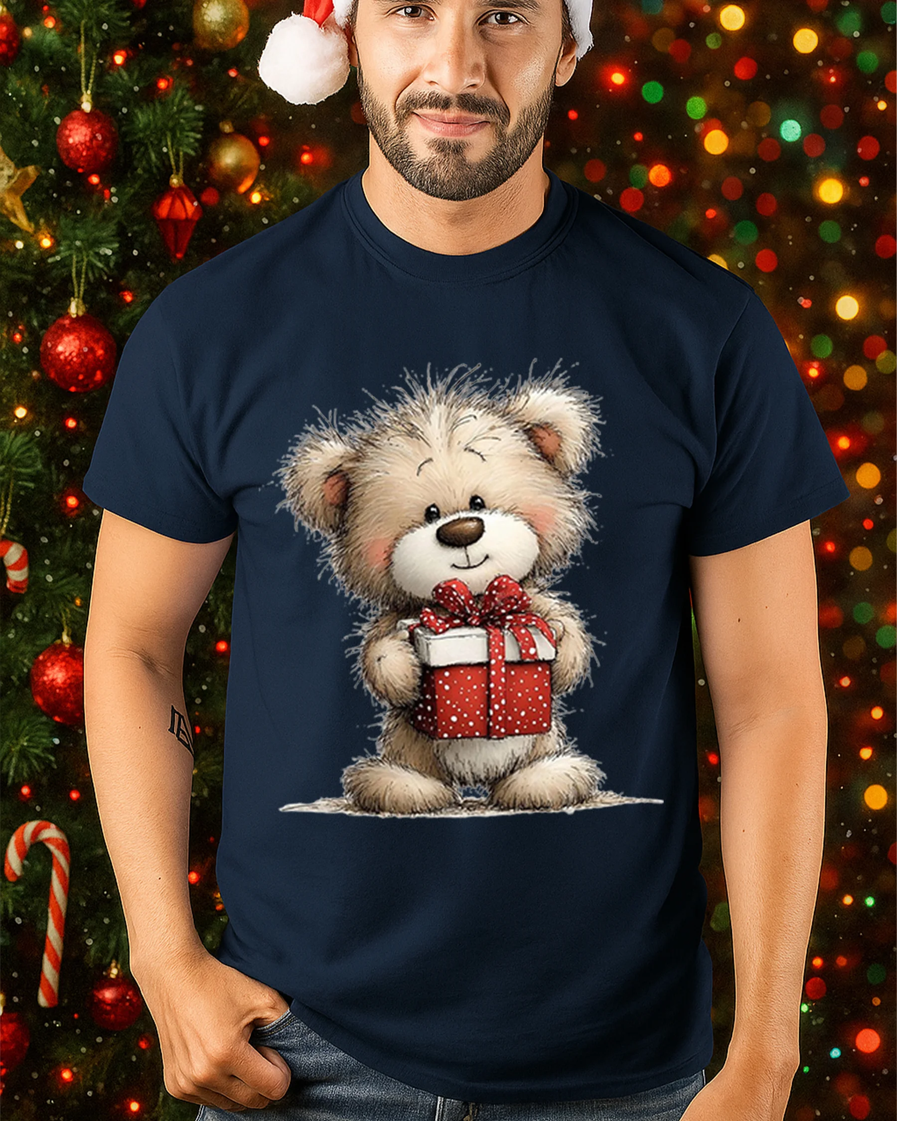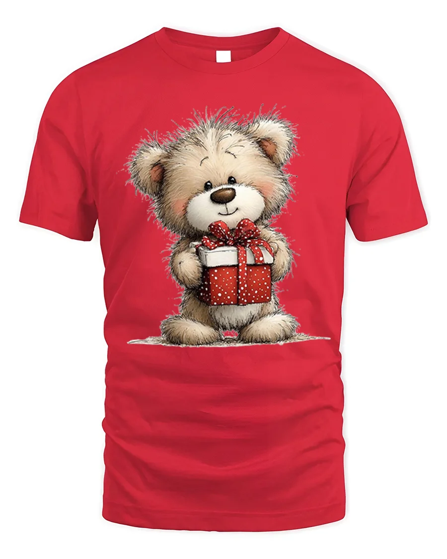 Crafted from soft, breathable fabric, this t-shirt ensures comfort whether you’re attending holiday parties, wrapping gifts, or enjoying cozy evenings by the fire. The high-quality print highlights every detail of the bear’s fur and the festive ribbon, keeping the artwork vibrant through repeated washes. Its classic fit makes it easy to pair with jeans, joggers, or layered winter outfits, offering versatile style throughout the season.