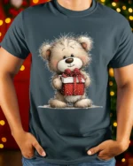 Cute Teddy Bear Christmas T-Shirt with Holiday Gift Illustration