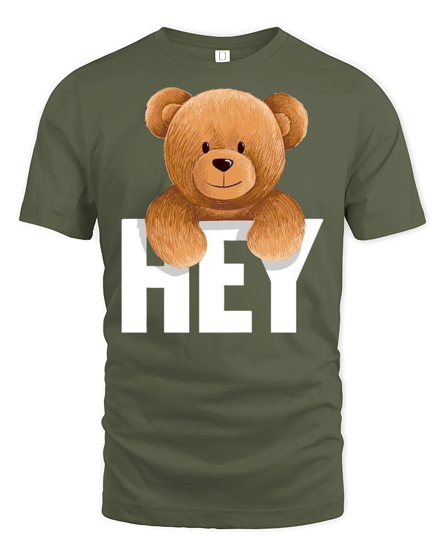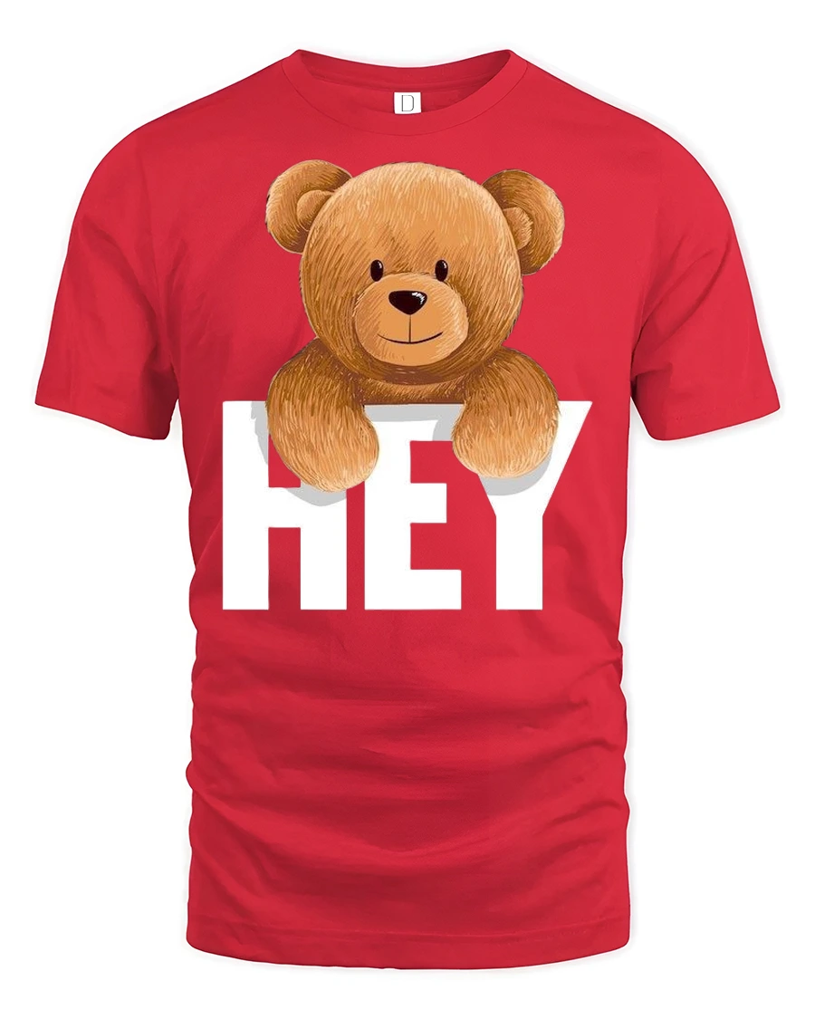 Cute Teddy Bear Hey Graphic T Shirt Funny Cartoon Animal Tee delivers a charming and playful design that instantly grabs attention.