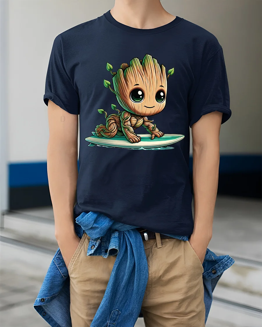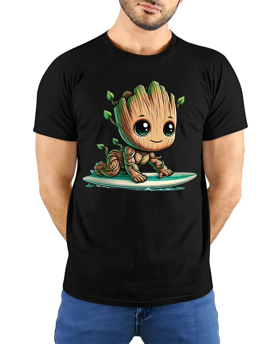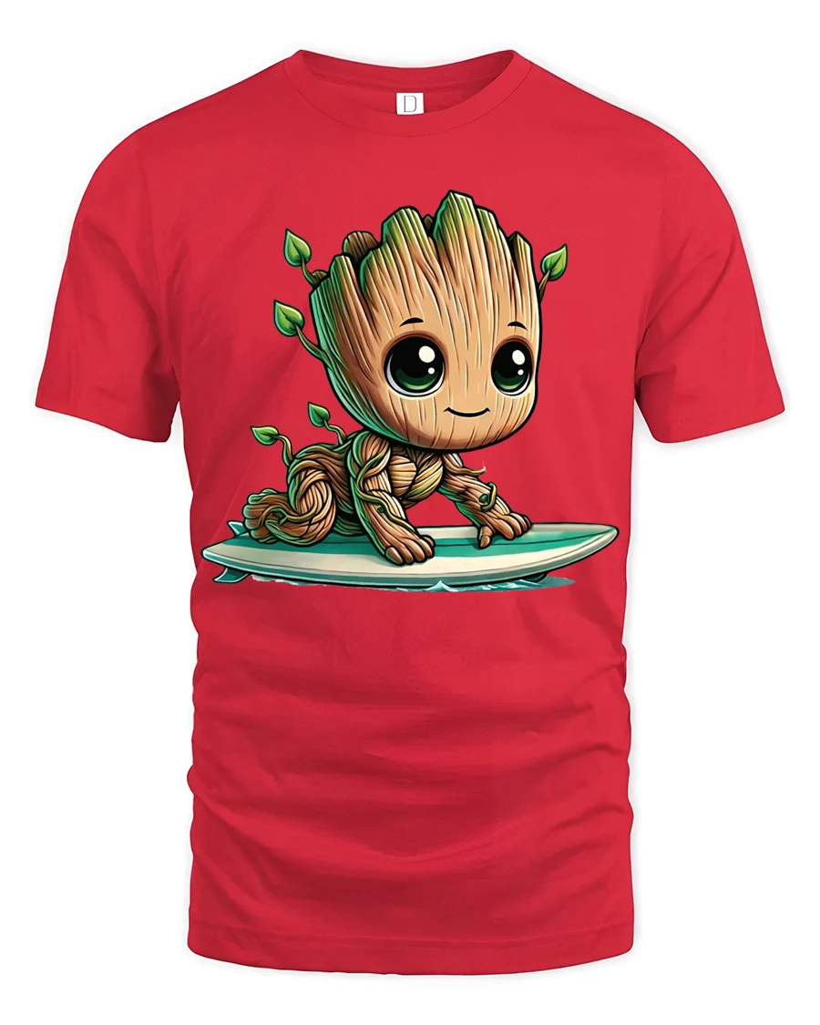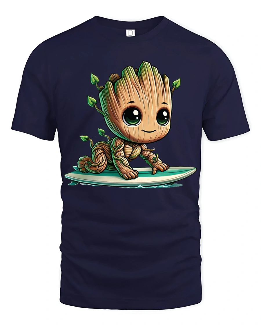 Cute Tree Baby Surfing Cartoon Graphic T Shirt combines adorable character design with a fun and playful beach vibe.