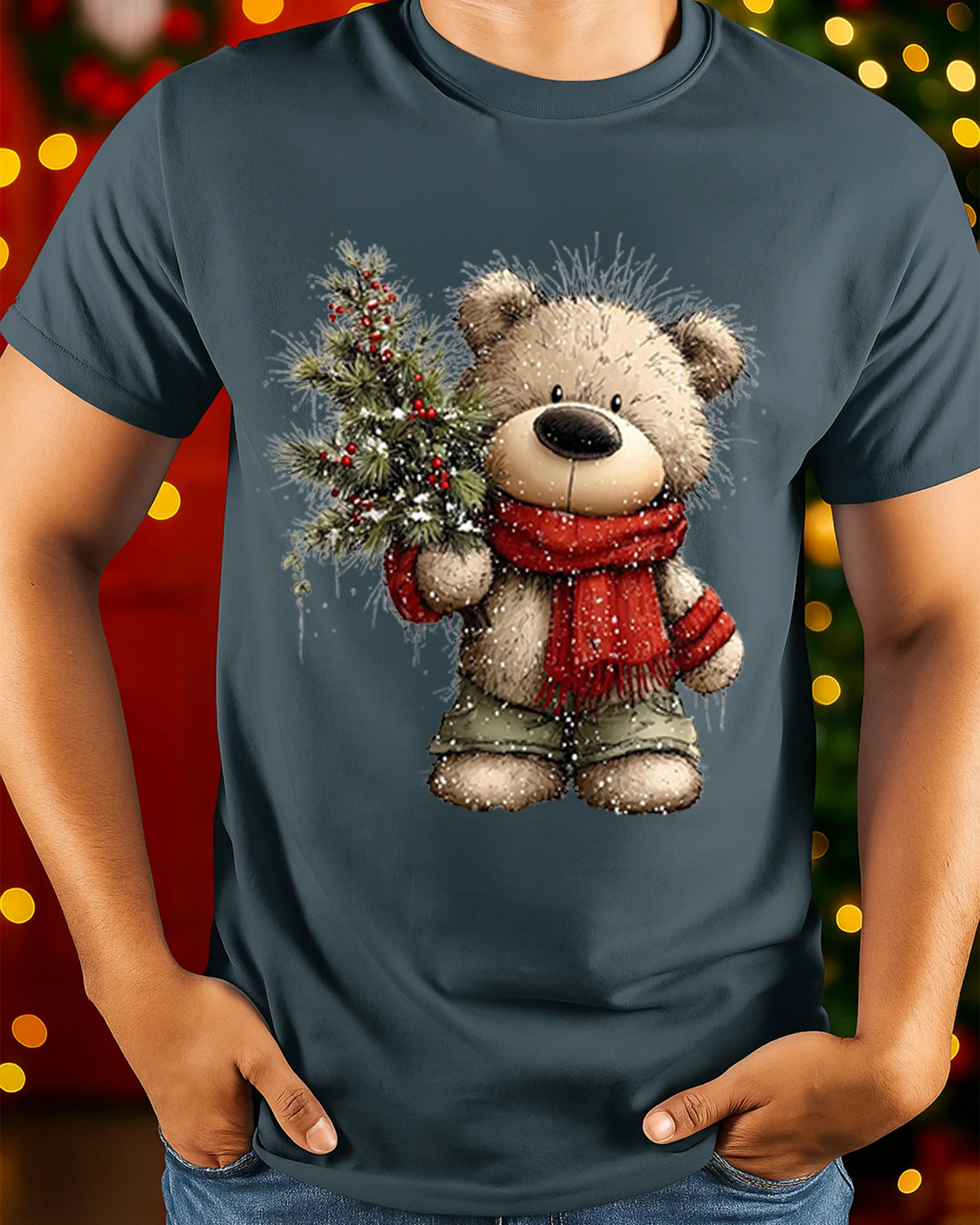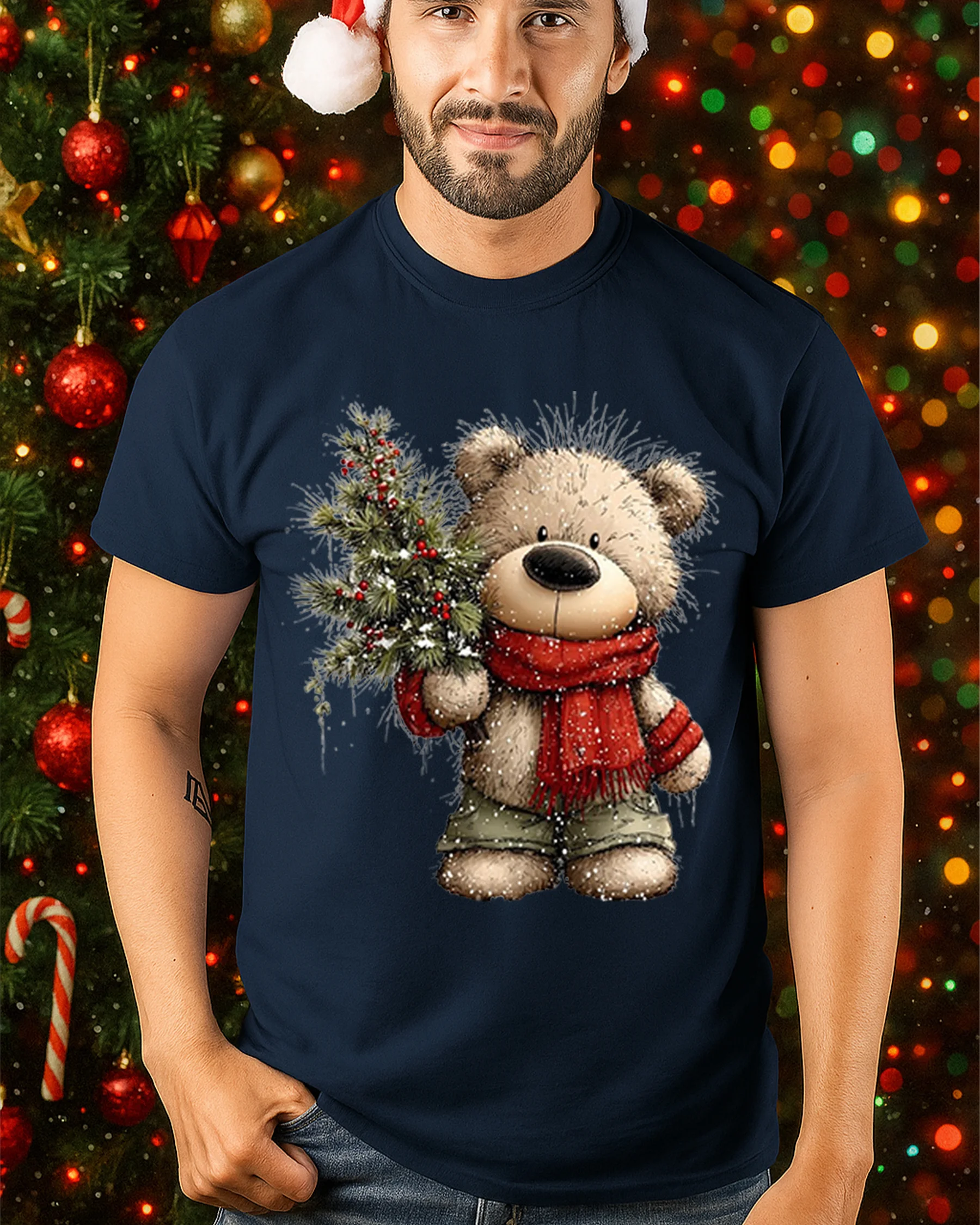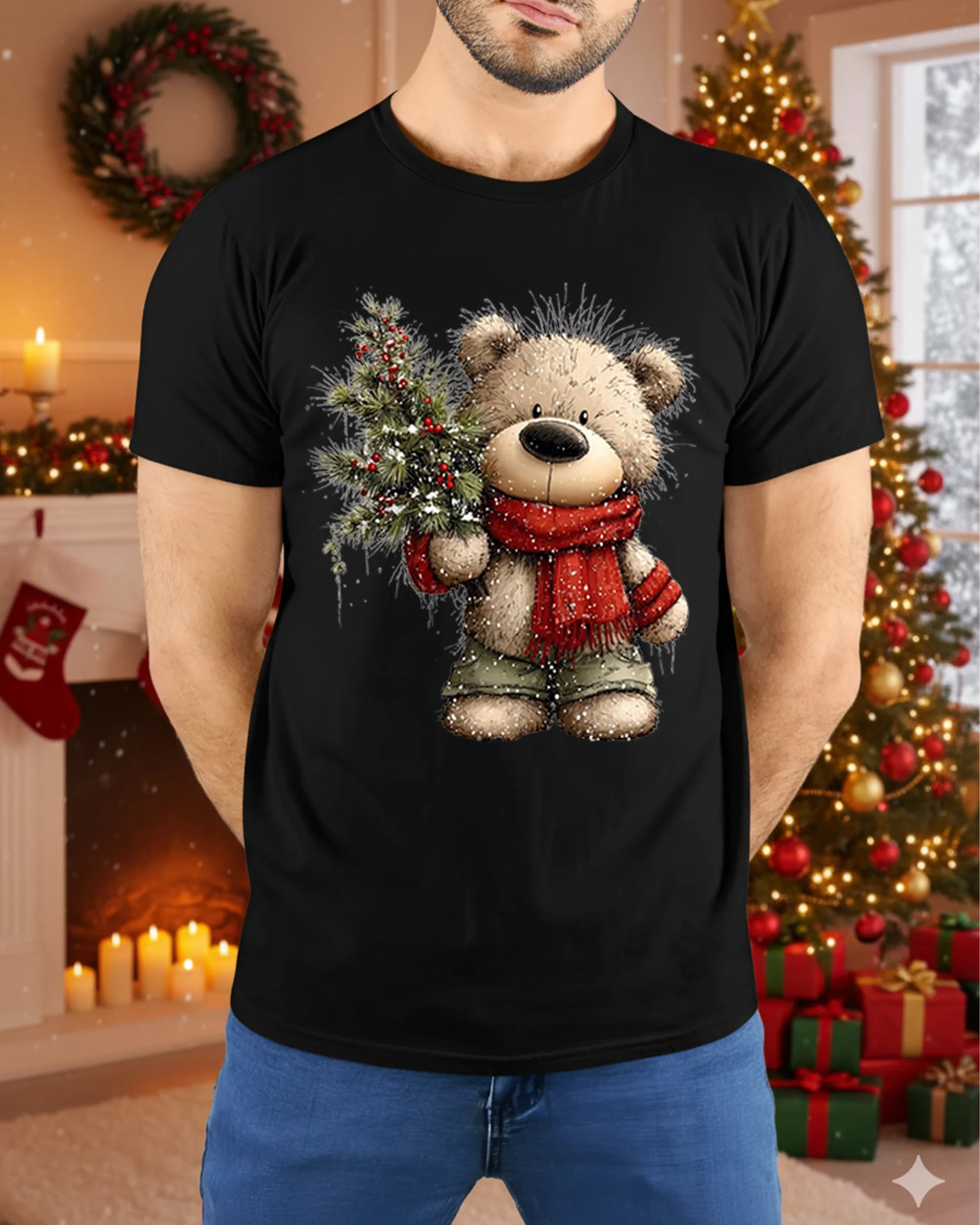 This Cute Winter Teddy Bear T-Shirt with Holiday Pine Bouquet Art also makes a thoughtful gift for teddy bear lovers, friends, and family who enjoy heartwarming holiday designs. Ideal for Christmas parties, winter events, festive photos, or cozy daily wear, it spreads cheer and seasonal warmth wherever it’s worn. Add a touch of adorable winter magic to your outfit with this charming teddy bear tee.