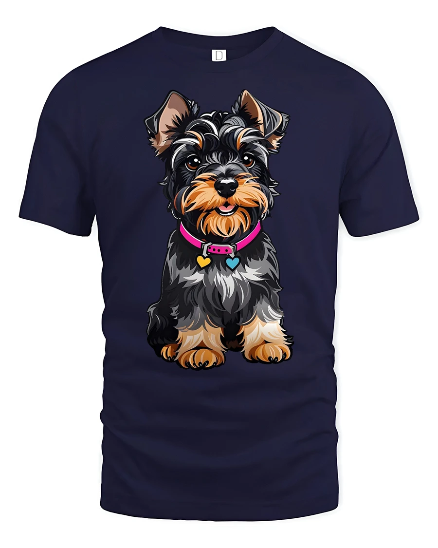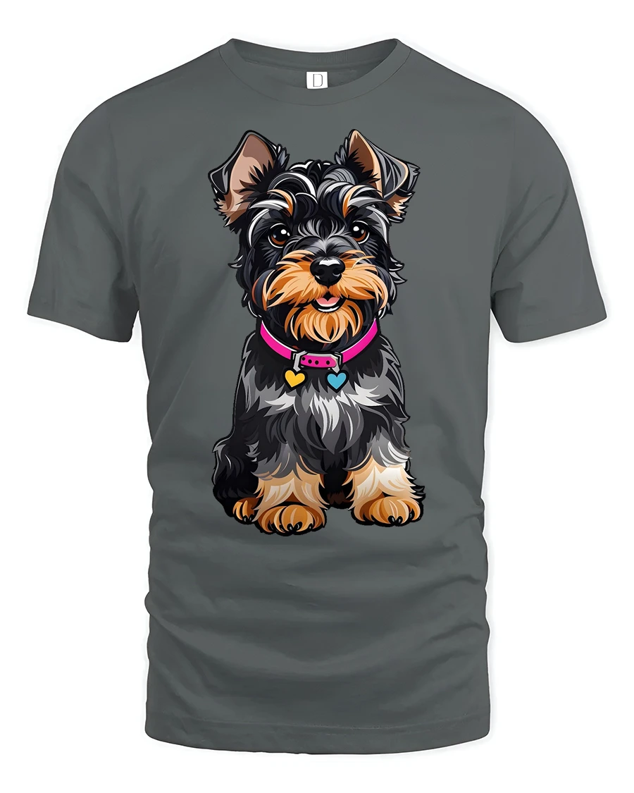 Cute Yorkshire Terrier Graphic Tee Adorable Puppy Lover Tshirt features a charming illustration that highlights the lovable personality and playful spirit of a beloved small dog companion. The detailed yorkie artwork creates a warm and friendly visual that captures the sweet expression and distinctive features of this popular breed. This delightful design brings joy and personality into everyday fashion through artistic creativity and gentle character styling.