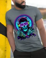 This Cyber Neon Skull Gamer Graphic T-Shirt combines futuristic style and bold attitude in a striking design that glows with energy. Made from high-quality cotton blend fabric, it delivers all-day comfort while showcasing an electrifying skull illustration surrounded by neon lights and cyberpunk elements. The detailed headset, glowing eyes, and layered digital effects give it a next-level look that perfectly fits modern streetwear and gamer culture.
