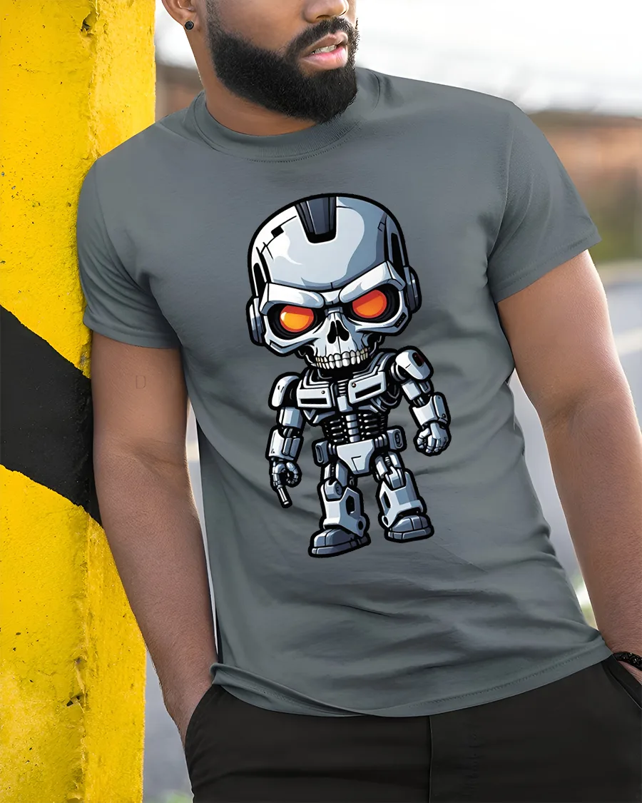 Perfect for fans of science fiction robotics and futuristic aesthetics this graphic tshirt offers a stylish balance between edgy creativity and wearable comfort. The modern robot skull artwork symbolizes strength intelligence and innovation while keeping a fun expressive character. Lightweight breathable material allows flexibility throughout the day while maintaining vibrant print quality.