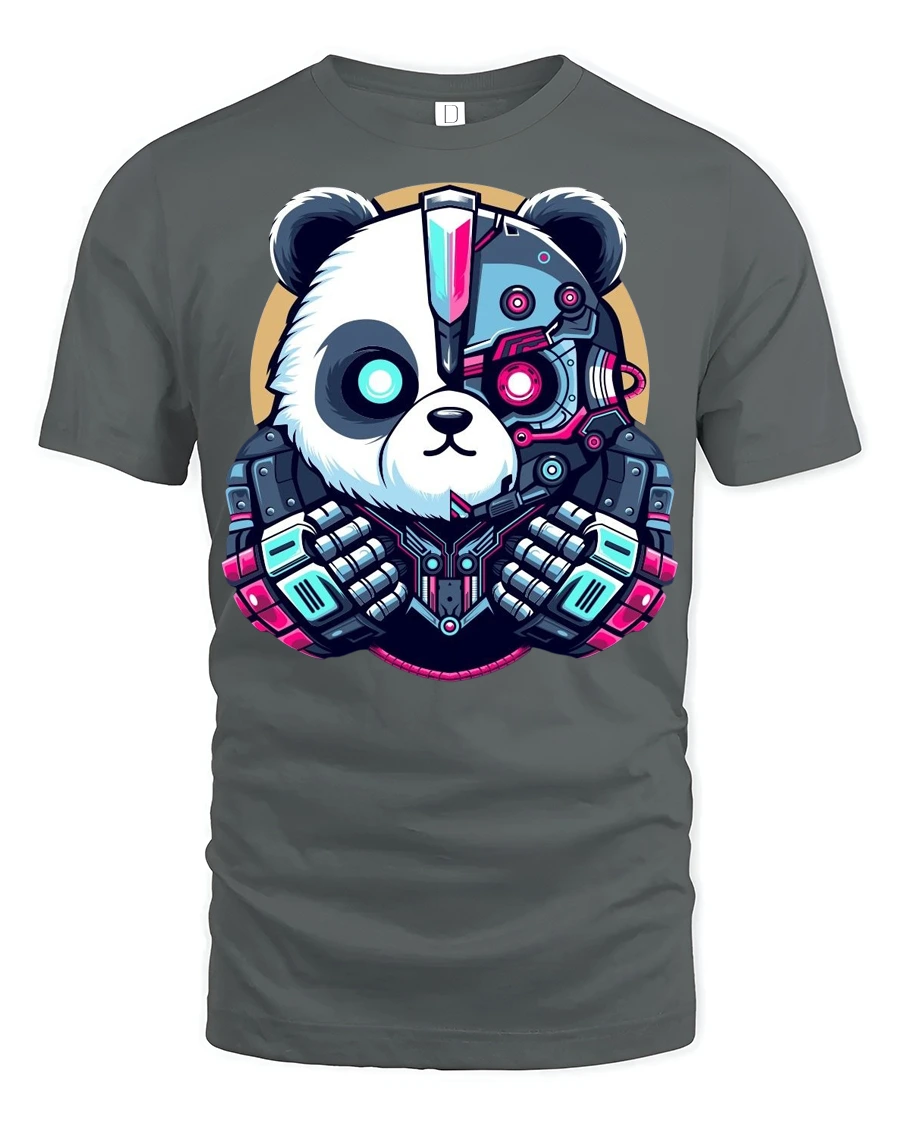 Cyberpunk Panda Robot Graphic T Shirt Futuristic Tech Style brings a striking fusion of cute and high tech design into one bold statement piece.