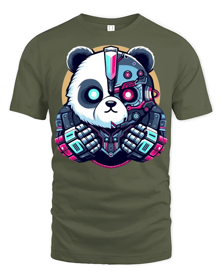 Featuring a half panda half robotic character with neon inspired details, this graphic captures the essence of futuristic style and digital creativity.
