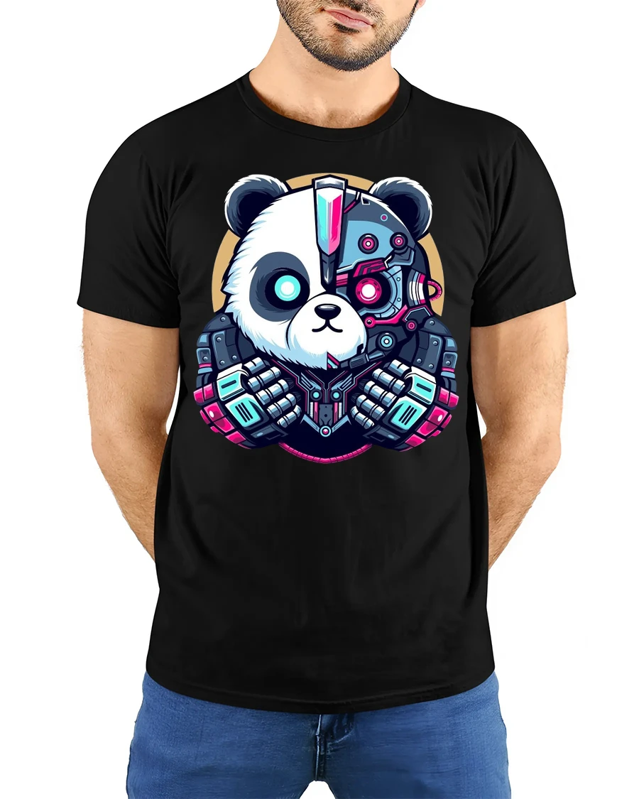 Home Hobbies Cyberpunk Panda Robot Graphic T Shirt Futuristic Tech Style