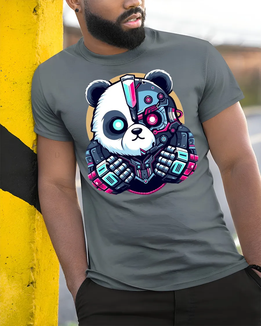 Cyberpunk Panda Robot Graphic T Shirt Futuristic Tech Style