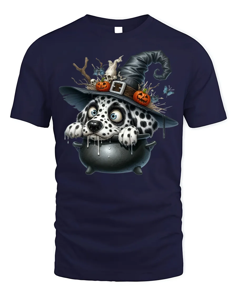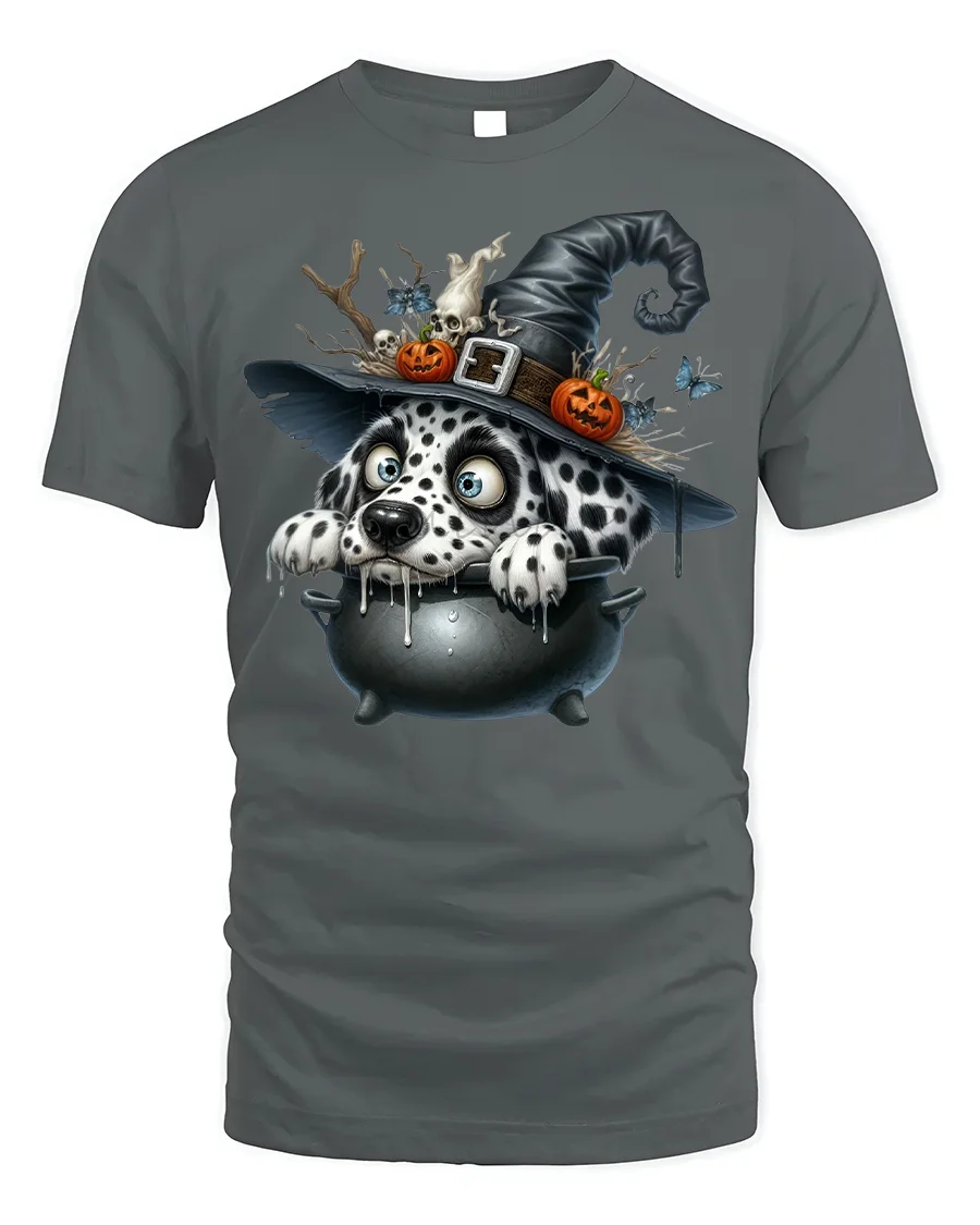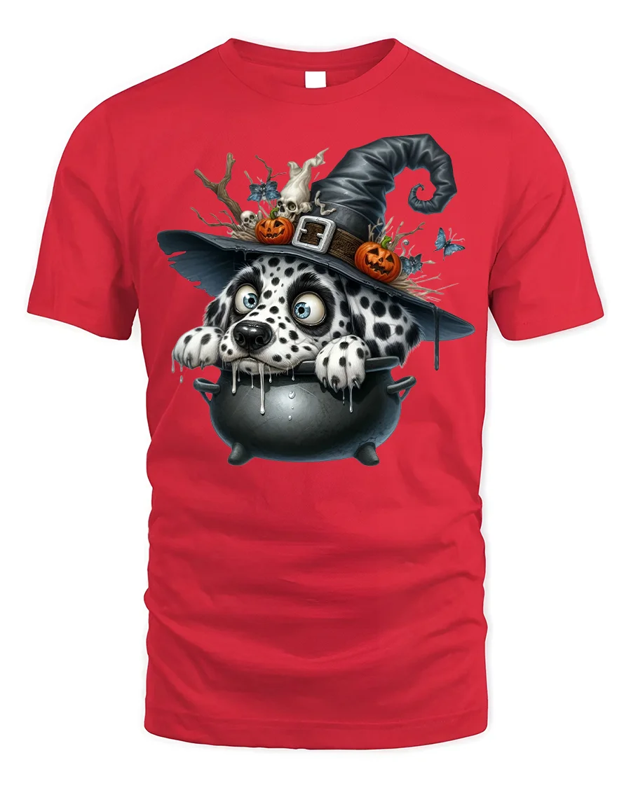 This Halloween graphic tee is designed for comfort and style, ideal for trick-or-treating, parties, haunted house visits, or casual October nights out. The Dalmatian Witch Cauldron Halloween Graphic T-Shirt is versatile and easy to pair with jeans, jackets, or layered outfits, ensuring you stay both stylish and comfortable. Its cute yet spooky theme makes it a conversation starter wherever you go.