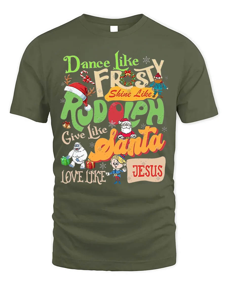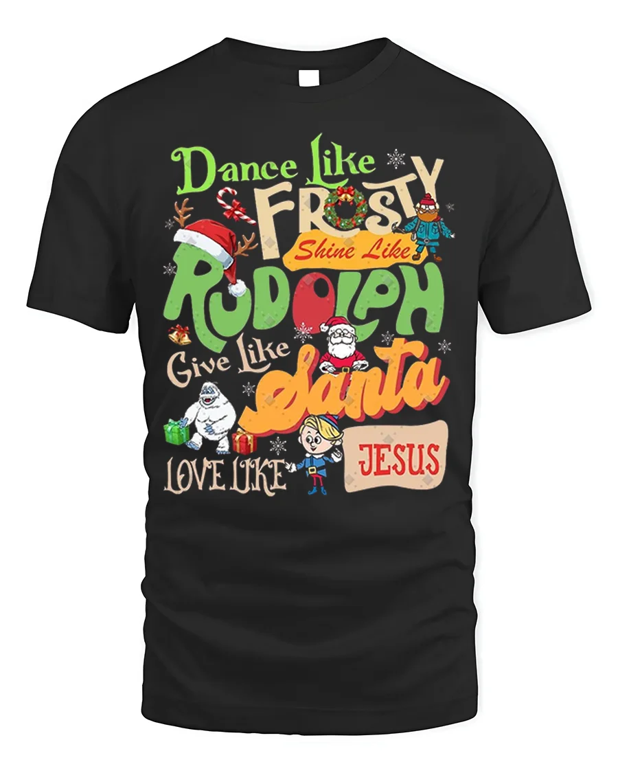 Spread the true spirit of the holidays with our Dance Like Frosty Rudolph Santa Jesus Christmas T-Shirt. This colorful and uplifting design brings together your favorite Christmas icons — Frosty, Rudolph, and Santa — with a beautiful reminder to love like Jesus. It’s a perfect mix of festive fun and meaningful message for anyone who enjoys celebrating Christmas with faith and joy.