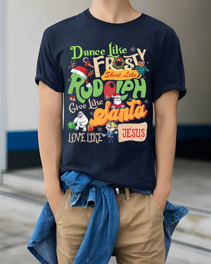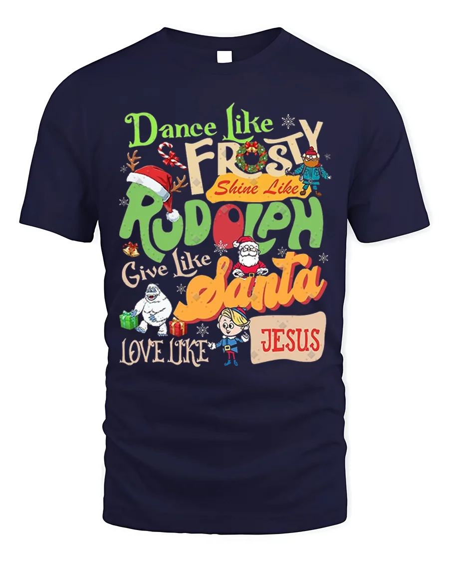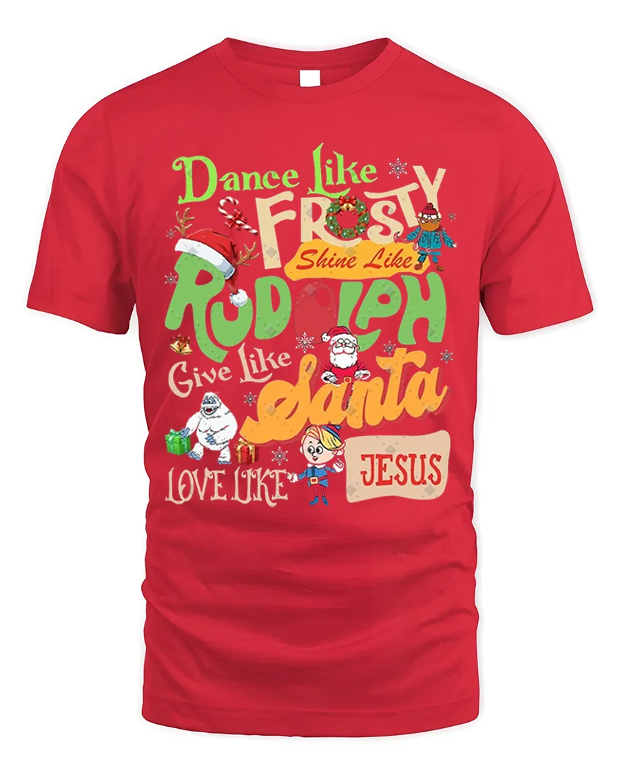 The Dance Like Frosty Rudolph Santa Jesus Christmas T-Shirt also makes a wonderful gift for loved ones who cherish both holiday cheer and Christian values. Whether you wear it for parties, holiday photos, or casual outings, it’s a great way to share positivity, kindness, and the joy of the season. Celebrate faith, fun, and love this Christmas with a shirt that truly shines.