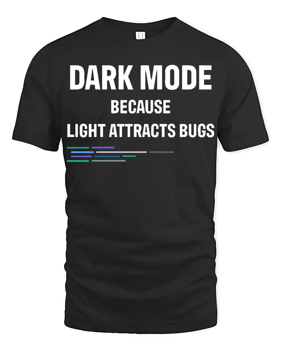 Dark Mode Because Light Attracts Bugs Funny Coding T Shirt Geek Tee