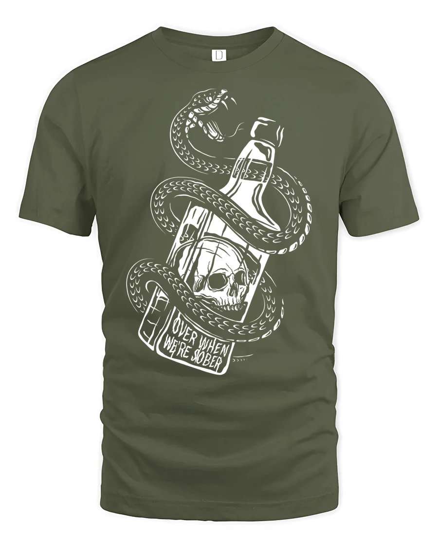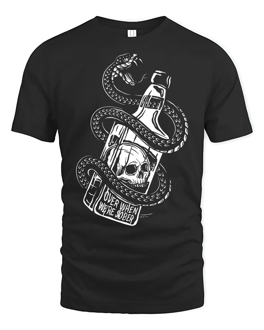Dark Snake Skull Whiskey Bottle Graphic Tee Edgy Gothic Style Tshirt delivers a bold and rebellious look packed with attitude.