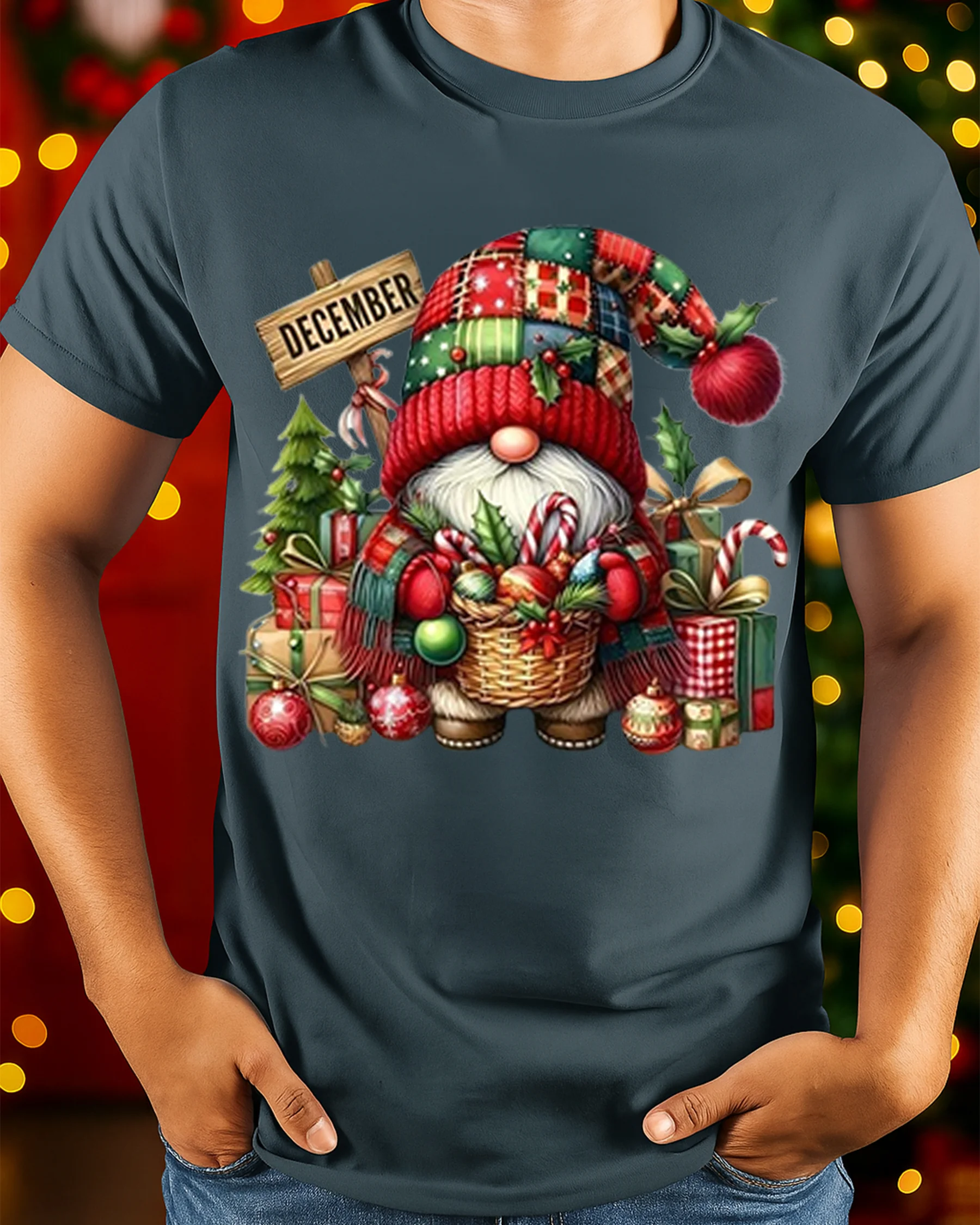 Celebrate the joy of the season with this December Gnome Christmas T-Shirt Cute Holiday Gift Tee. Featuring an adorable gnome surrounded by presents, candy canes, ornaments, and Christmas trees, this festive design perfectly captures the spirit of December. It’s the ideal tee for anyone who loves holiday magic, cozy vibes, and cheerful Christmas style.