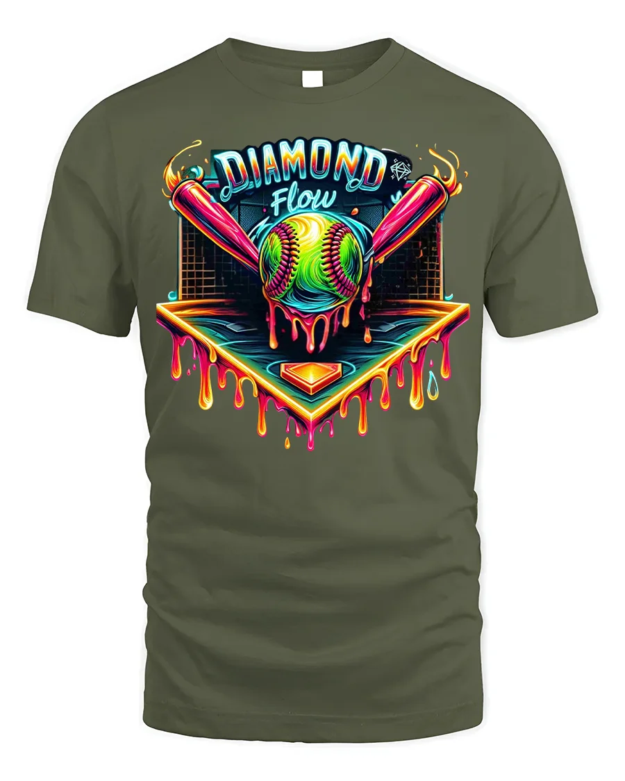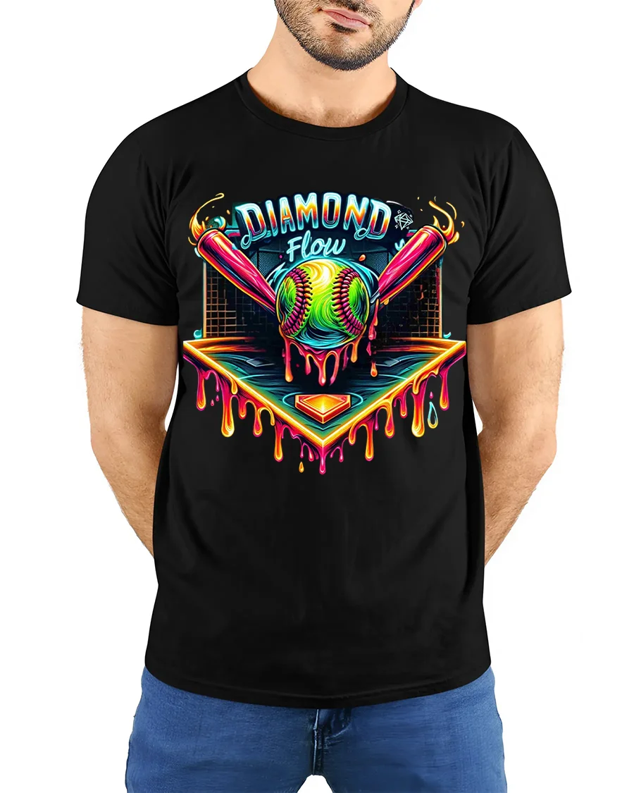 The Diamond Flow Softball Drip Neon Graphic T-Shirt Black pairs easily with jeans, joggers, or shorts, giving you versatility for casual outings, team practices, or game-day outfits. It also makes a great gift idea for softball players, coaches, or fans who appreciate unique designs that celebrate the game with modern flair. Bring energy, attitude, and softball pride to your style with this one-of-a-kind drip art tee.