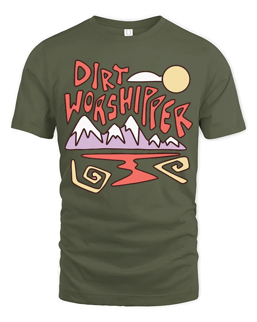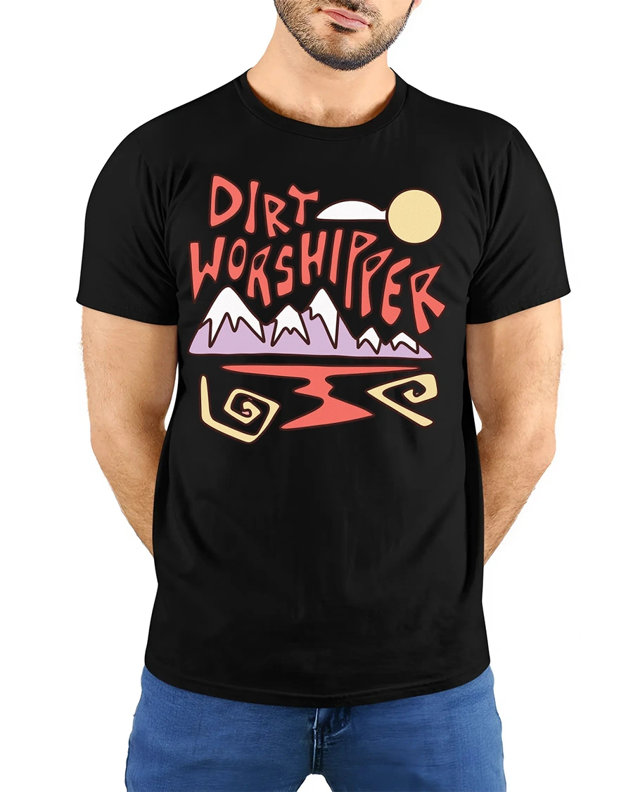 This tshirt provides a comfortable feel suitable for casual outfits, hiking trips, travel experiences, or relaxed everyday wear. The dirt worshipper message symbolizes love for trails, mountains, and natural environments, while the artistic landscape illustration adds expressive personality. Its versatile aesthetic pairs easily with modern fashion, helping create confident style inspired by outdoor exploration.