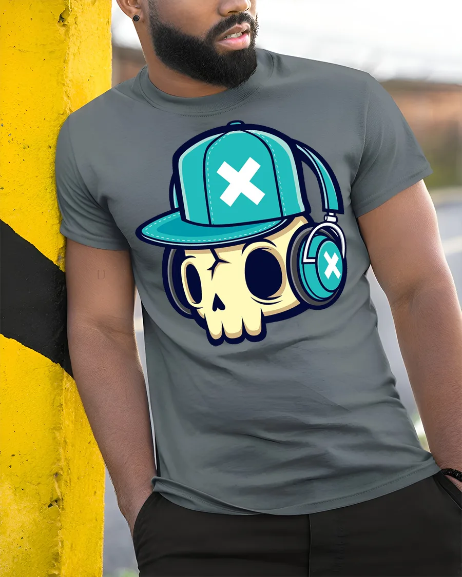 DJ Skull With Headphones Urban Style Graphic Tee Shirt blends music culture with bold urban style.