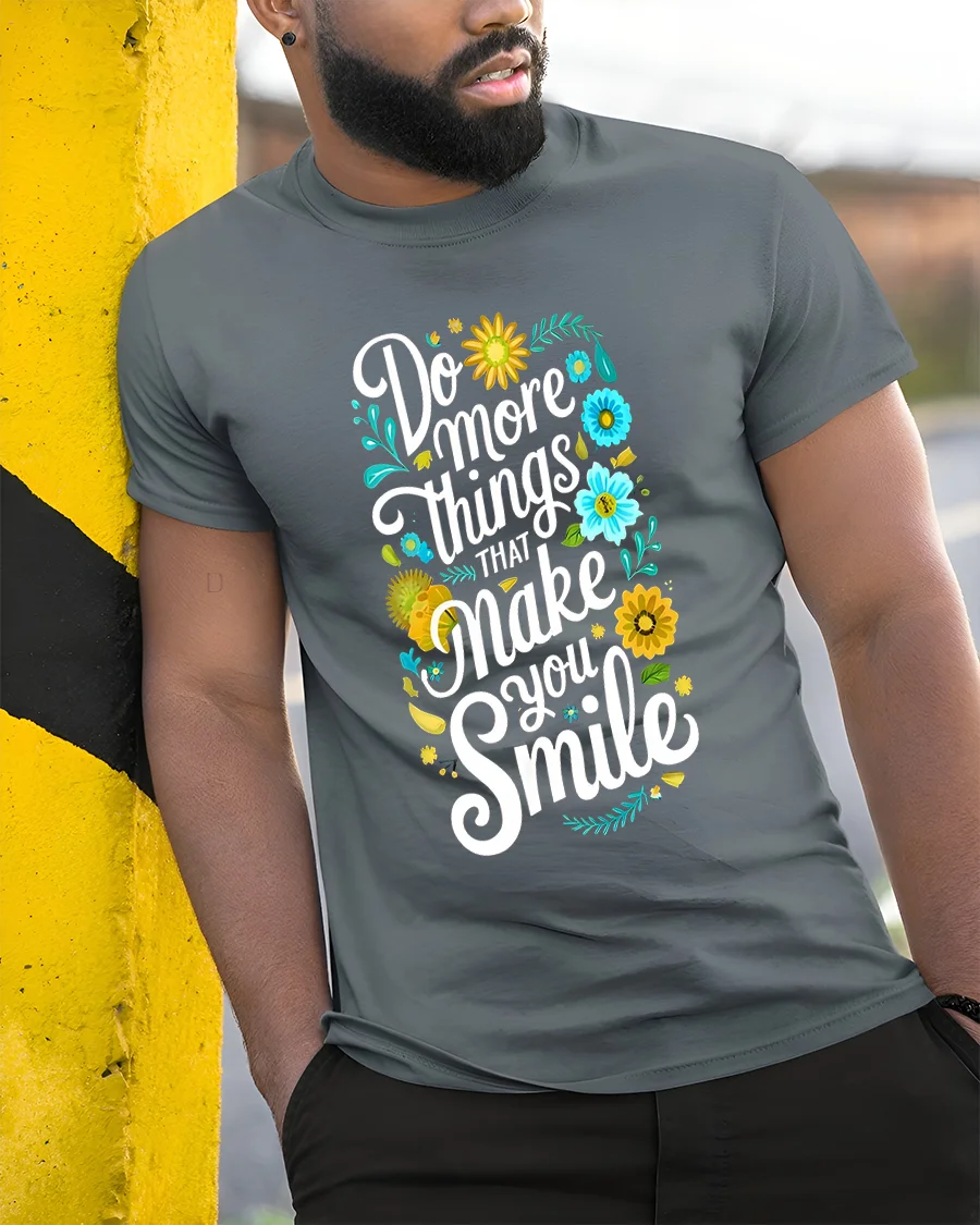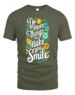 More than just a piece of clothing, this Do More Things That Make You Smile T-Shirt is a statement of optimism and a celebration of life’s simple pleasures. It makes a thoughtful gift for friends, family, or anyone who could use a little extra sunshine in their life. Wear your heart on your sleeve and inspire others to find their smiles with this lovely, uplifting graphic tee. Add this beautiful and meaningful t-shirt to your cart today!