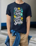 Elevate your mood and your wardrobe with the Do More Things That Make You Smile T-Shirt – Floral Happy Tee. This charming t-shirt features a beautiful hand-lettered quote “Do more things that make you smile,” surrounded by vibrant, whimsical flowers and leaves in shades of yellow, blue, and green. It’s a perfect blend of inspirational message and delightful floral artistry. Ideal for anyone who loves positive affirmations, bright designs, and spreading joy wherever they go.