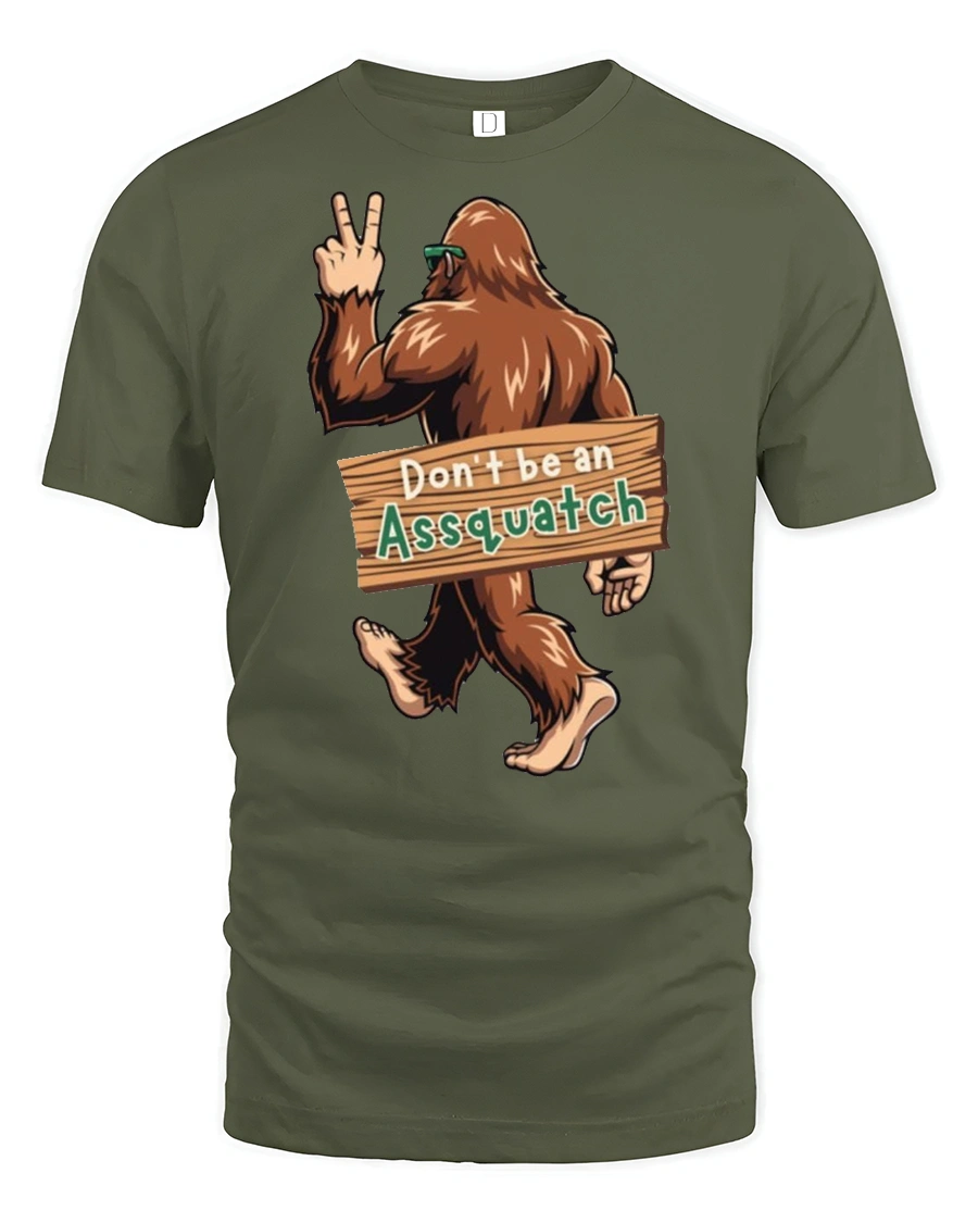 Dont Be An Assquatch Funny Bigfoot Graphic T Shirt Humor Style Tee - military green t-shirt on white background
